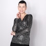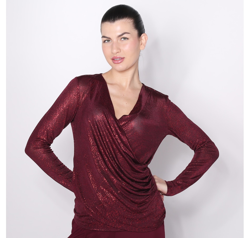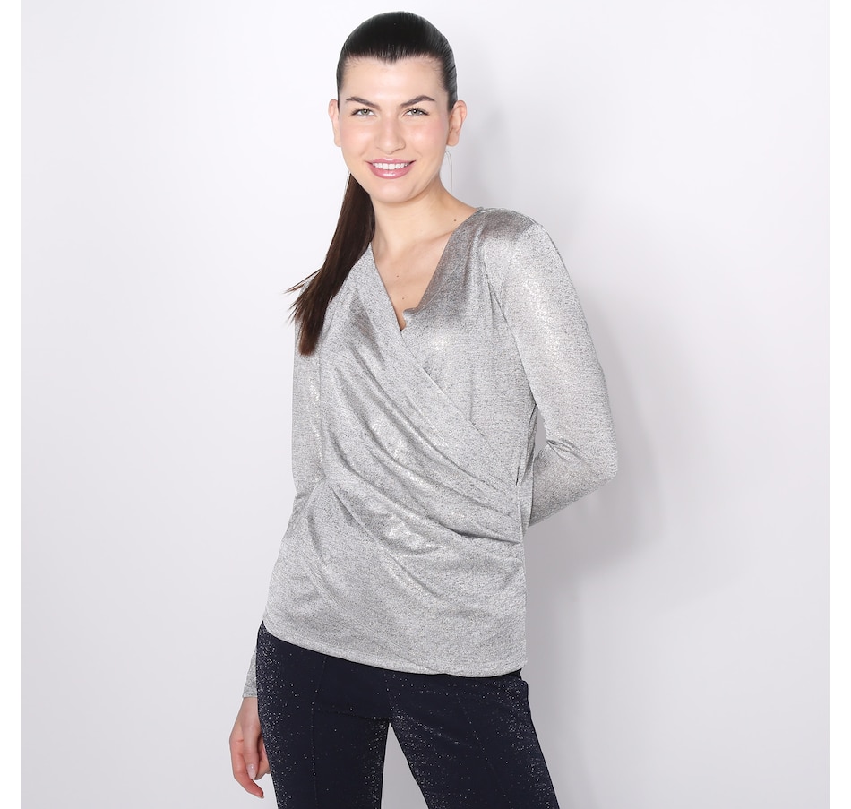 Centre your look in exciting style with this fabulous wrap front foiled knit top from Nina Leonard.