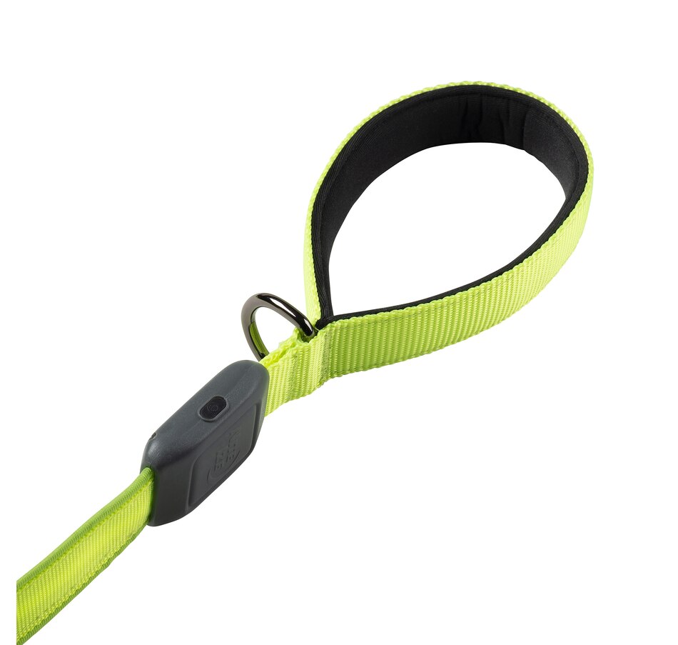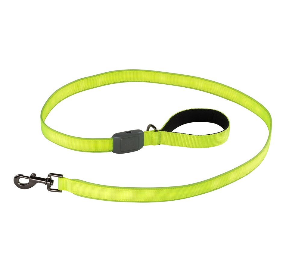 Welcome to a whole new world of nighttime visibility. Two ultra-bright LEDs send light through an integrated optical fibre to create full-length illumination so bright you need to see it to believe it. Featuring the convenience of rechargeability and easy push-button operation, this leash glows for more than six hours on a single charge. Nite Ize optical fibre technology transmits light throughout the entire length of this eye-catching leash without loss of light output and offers both constant glow and flash modes. Featuring a comfortable, padded handle with a built-in anchor point, this highly water-resistant leash is made to last.