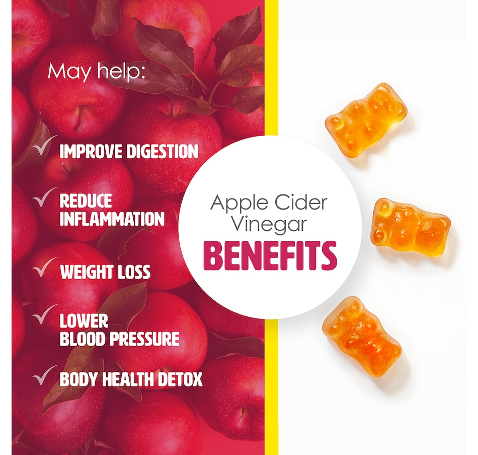 These No Sugar Apple Cider Vinegar Gummies are the hottest new performance gummy to hit the market. It's a gummy that uses apple cider vinegar first and promotes your overall health. Each gummy has 600mg of apple cider vinegar, a superfood ingredient with benefits such as reducing cholesterol, lowering blood sugar, and assisting in weight loss.