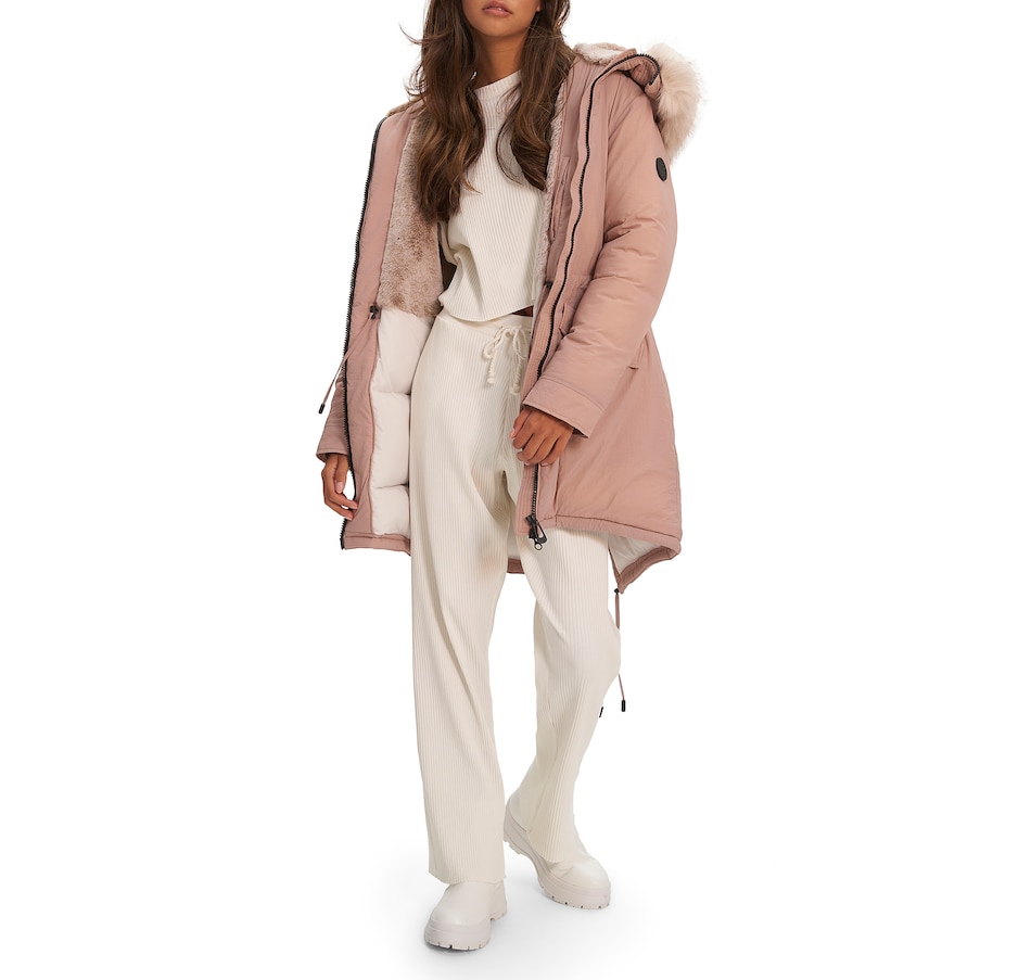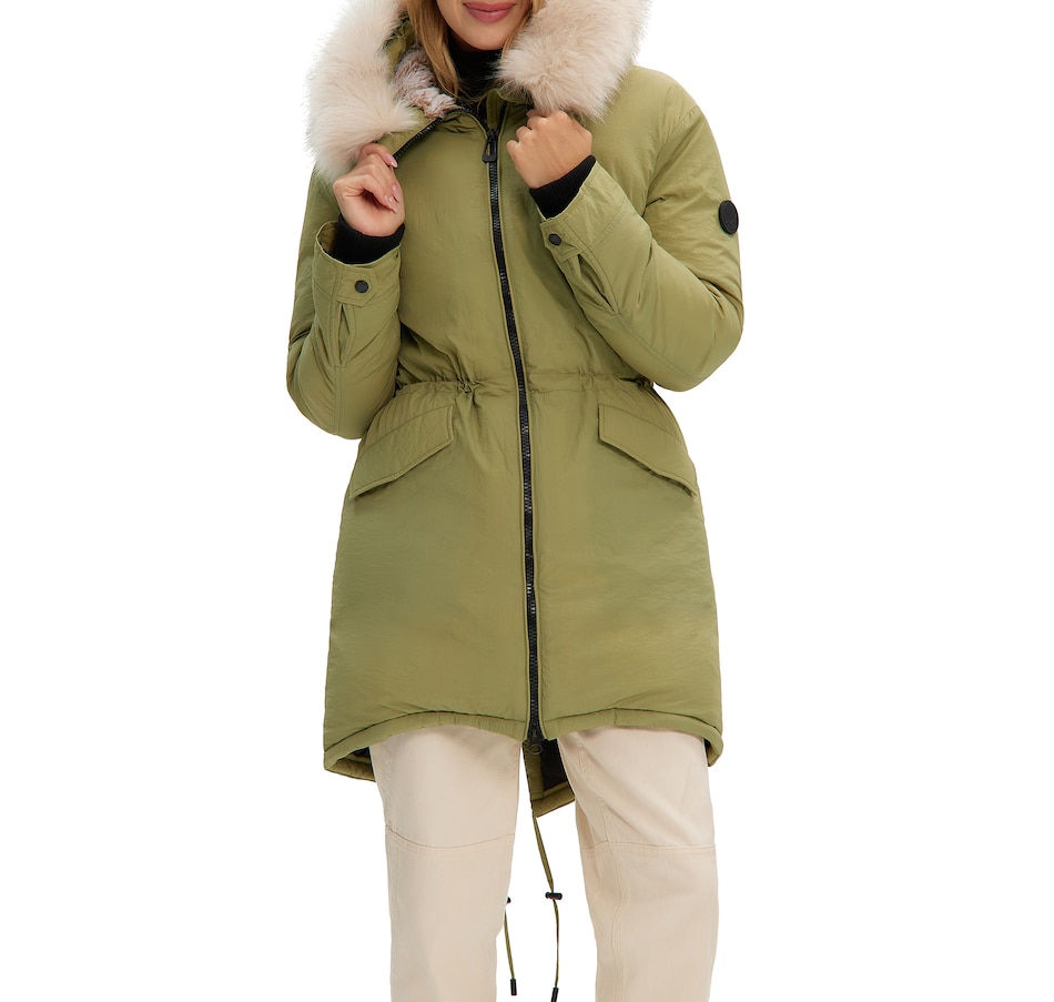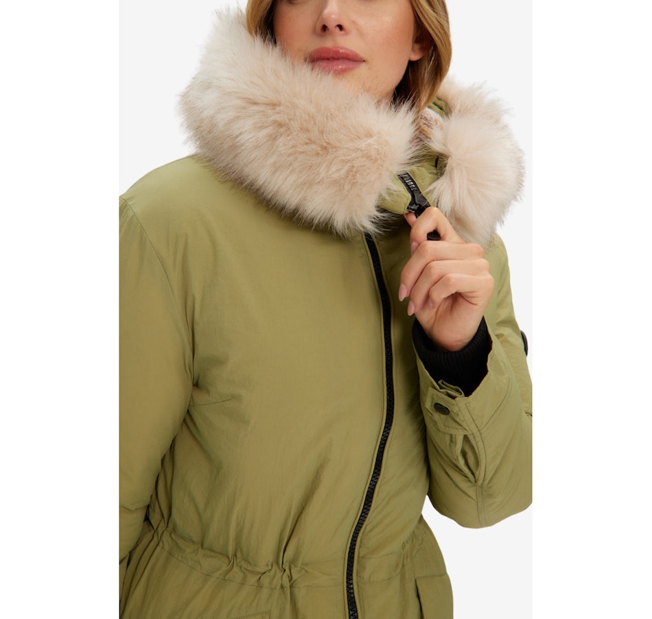 • Fabric: 100% nylon (shell), 100% polyester (lining, fill, faux fur)