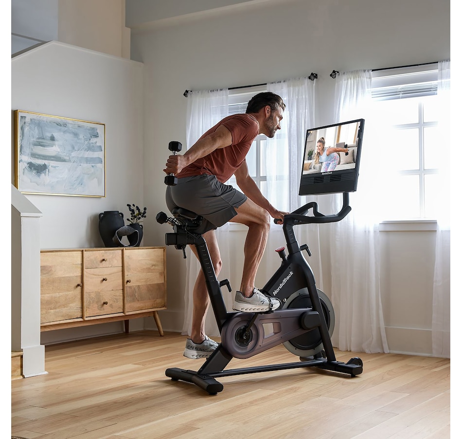 The NordicTrack 24 Studio Bike paired with the iFIT Pro Membership* is a smart indoor exercise bike built for immersive, high-intensity home cycling. Connect to your iFIT account on the 24” HD touchscreen to access personalized, trainer-led workouts that auto-adjust the bike’s 24 digital resistance levels in real time. Silent Magnetic Resistance™ ensures a smooth, quiet ride, ideal for cardio, endurance, and weight loss training.