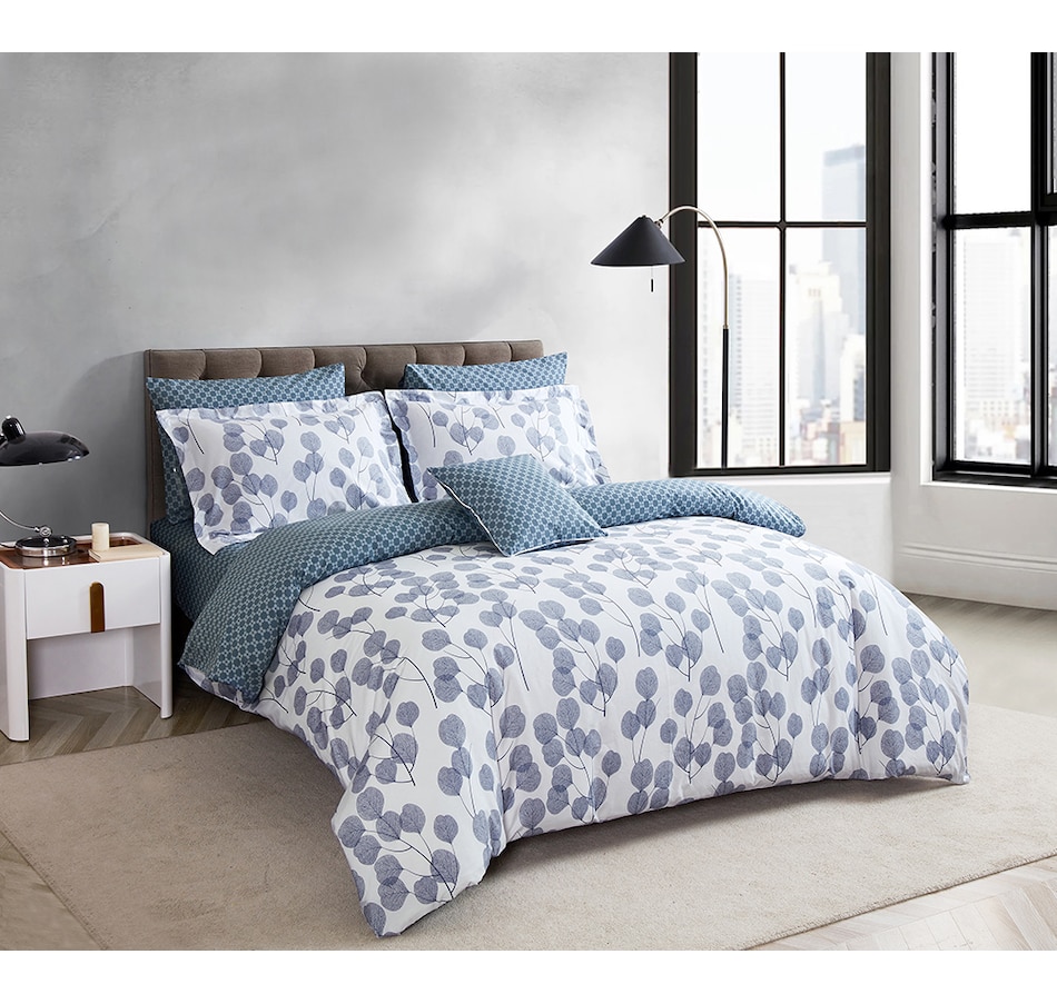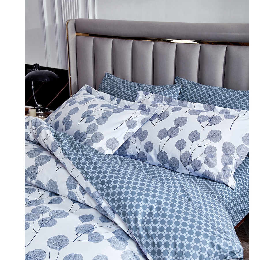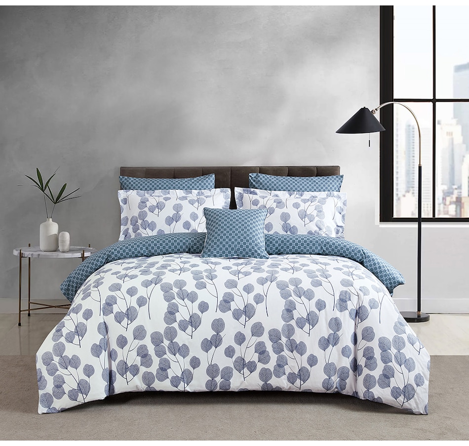 This four-piece printed duvet cover set from North Home includes a duvet cover, two pillow shams and a square cushion cover, and is made of 100% combed cotton 220-thread-count sateen printed fabric. It also features a zip closure at the side.