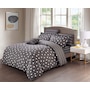 This 4-piece printed duvet cover set includes one duvet cover, two pillow shams and one square cushion cover. It is made of 100% combed cotton and 220-thread count sateen printed fabric. It has zip closure at side and is machine washable.