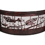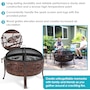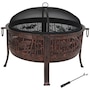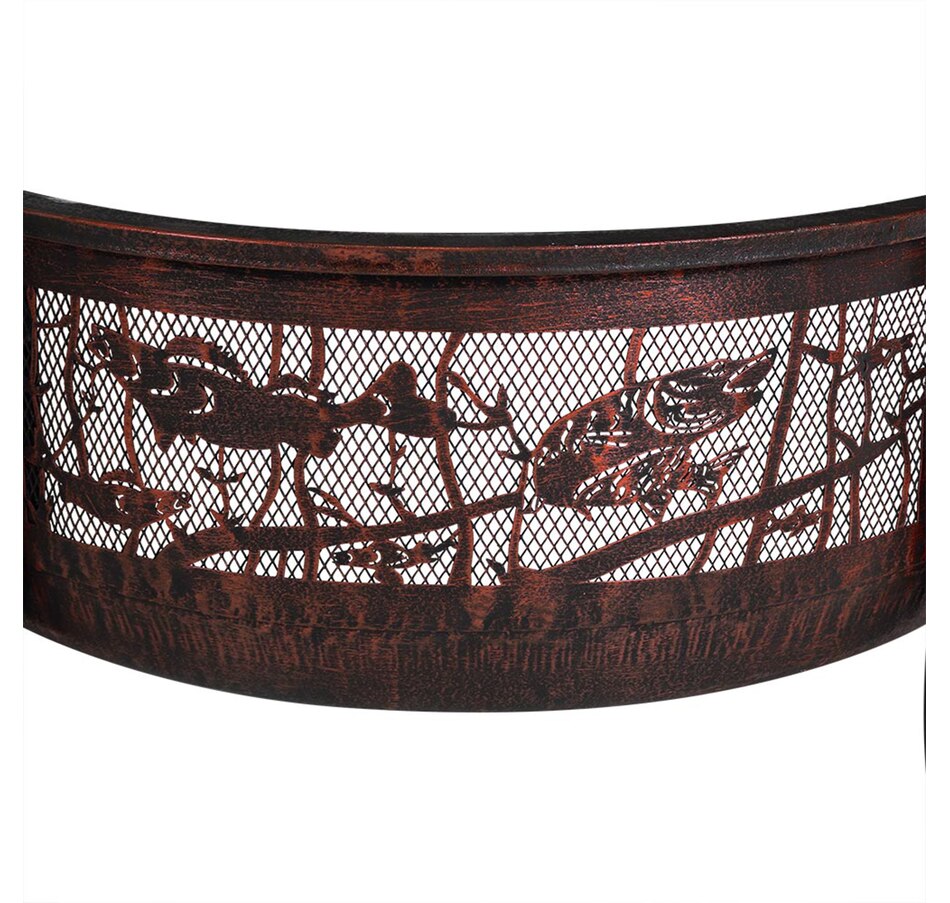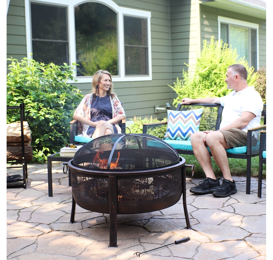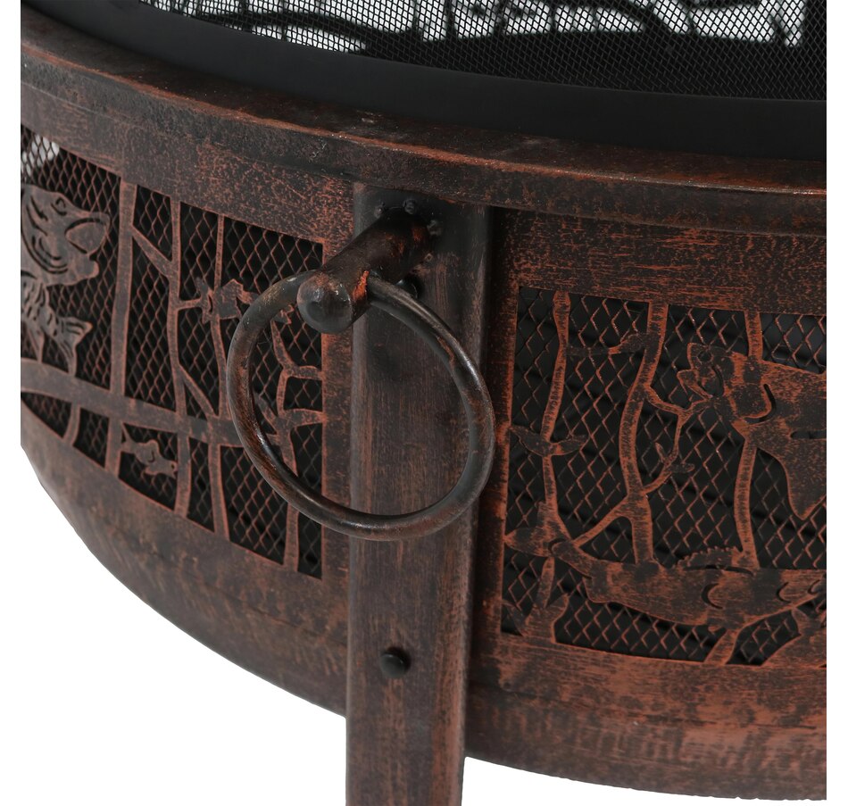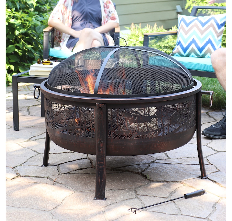 This Northwoods fishing fire pit is the perfect addition to a cabin, camper, or backyard with an included spark screen for further protection and convenience. Featuring a charming fishing theme, this outdoor, wood burning fire pit design provides ample of room for the perfect size fire and is easy to tend to and clean. The overall fire pit handle to handle is 34" diameter with a large 30" diameter bowl that is 11" deep. It is accented with a decorative fishing pattern that gets beautifully illuminated at night. Each fire pit includes a log poker to safely maintain your embers, spark screen for protection against the embers, cover for longevity, and a wood grate just for added fun. This is a wood burning fire pit and with all fire pits, is not designed to burn on a deck unless a fireproof pad is used. Enjoy this sturdy steel fire pit with the decorative design in any backyard or patio today.