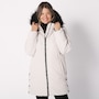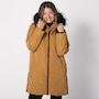 Ladies Diamond Quilted Long Jacket With Removable Faux Fur Hood