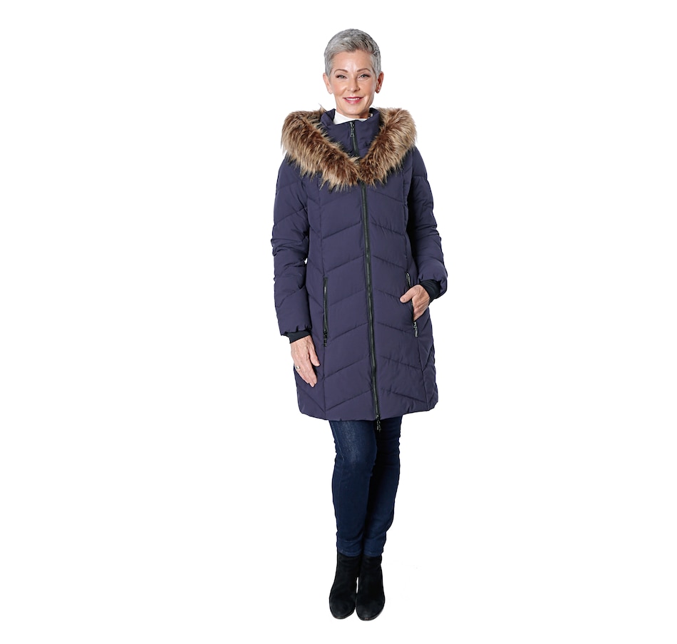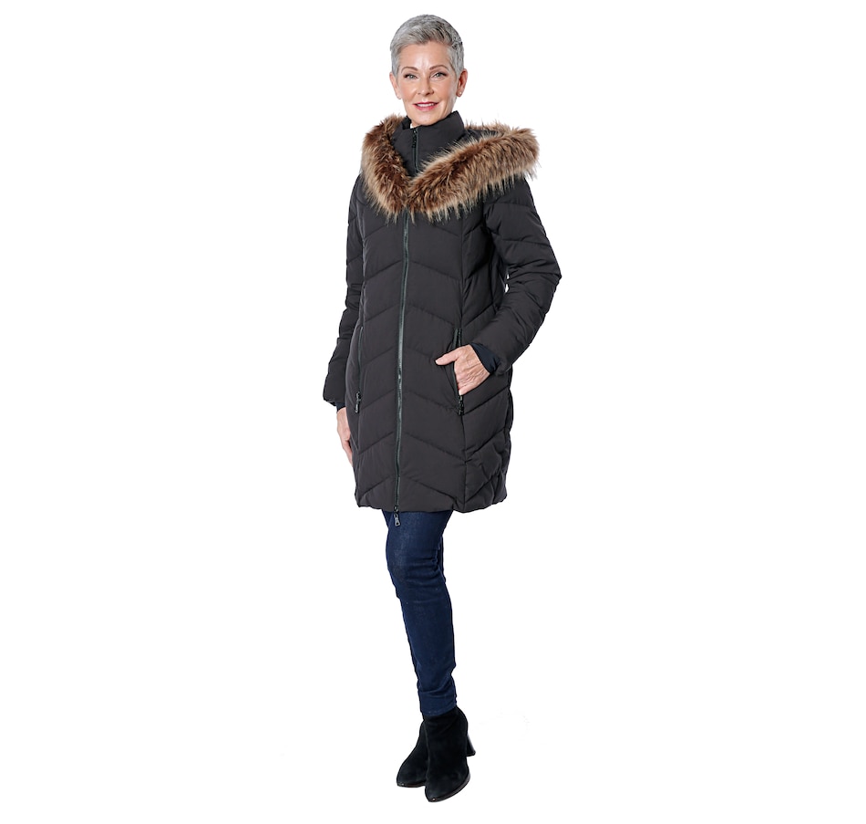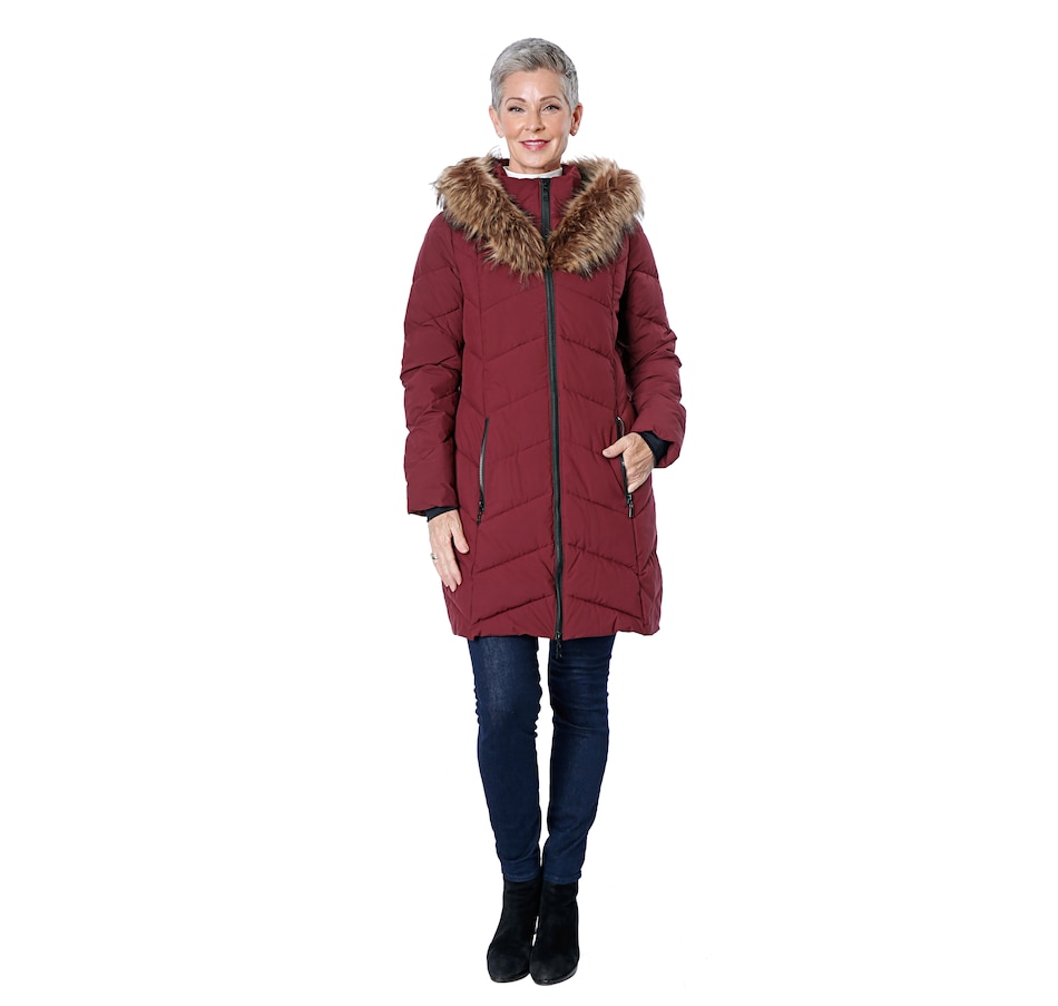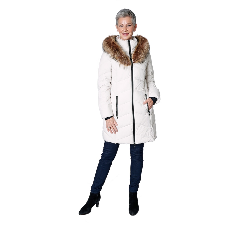 Quilted Parka with Faux Fur Trim