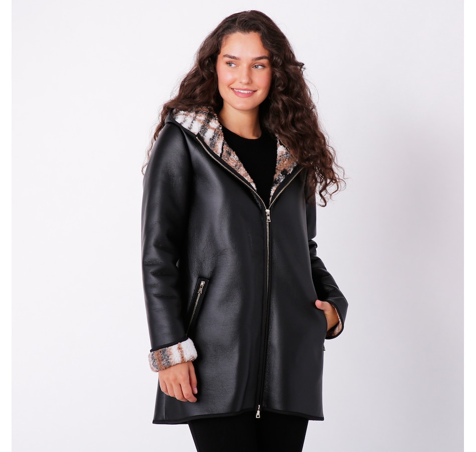 Just in time for the changing season, you're goin to love this Teddy coat from Nuage that features ultra soft faux sherpa printed lining, a metal zipper, and a faux leather-feel shell.