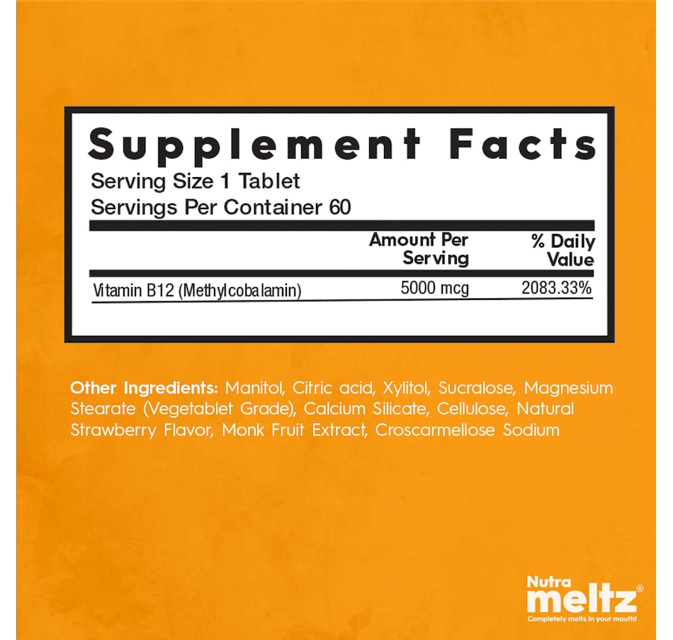 • Nutrameltz B12 Max 5000 Mcg (60ct)