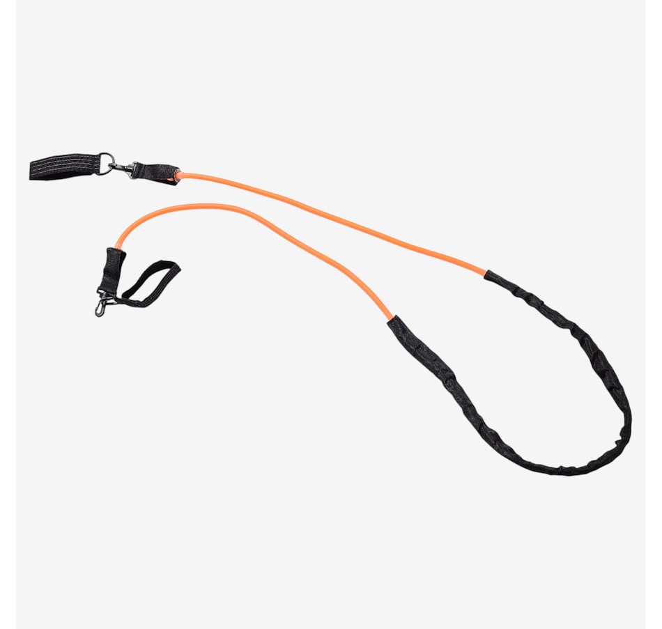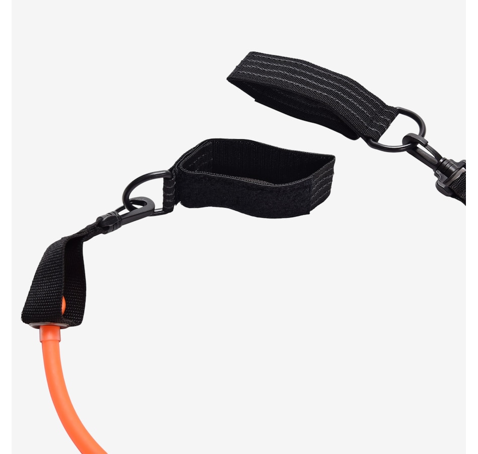 A 78” stretchable band that enhances strength and flexibility in biceps, shoulders, back, and legs. Attaches easily to the Nuvabar with two durable hook-and-loop straps. Comes with an abrasion-resistant black cover to help protect the band.