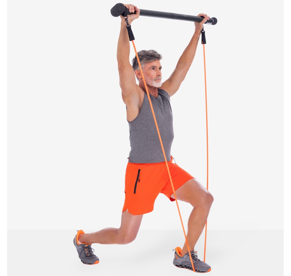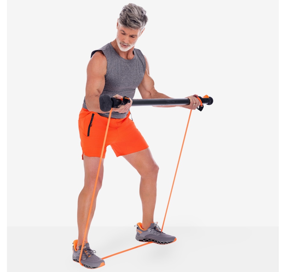 Adjust the resistance by increasing or decreasing the stance, or by wrapping/unwrapping the two black bands that wrap around the Nuvabar. Adds gentle, yet effective resistance and flexibility to help increase size in biceps, shoulders, back and leg strength. A stretchable band is easy on joints while helping tone and strengthen muscles. See nuvabar.com for detailed instructions on attaching and using the Total Body Band.