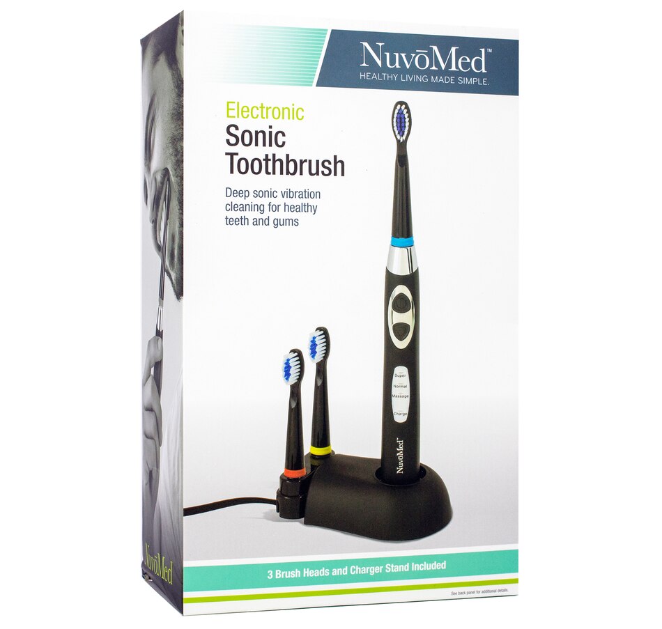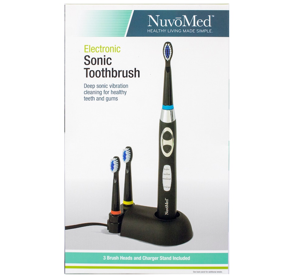 With the NuvoMed Electronic Toothbrush, you can take your teeth cleaning to the next level. Experience a deep sonic vibration clean with this this device, leaving you with healthy teeth and gums. The high-quality DuPont bristles promote naturally clean teeth by gently polishing off surface stains. The smart timer helps users to brush teeth the correct way, as recommended by dentists.