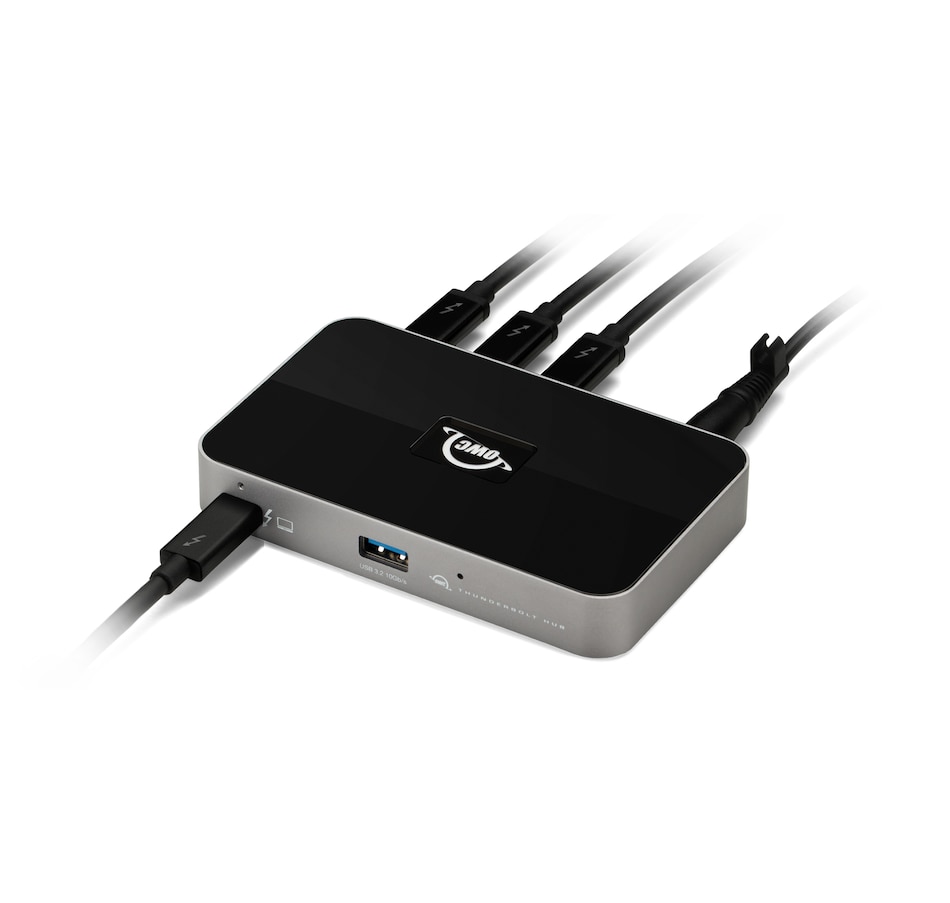 Expand the utility of your desktop or notebook with the Thunderbolt Hub from OWC. Ideal for the professional who needs quick data transfers and the ability to manage multiple devices simultaneously, this hub gives you three additional Thunderbolt 4 ports and a single USB-A 3.2 Gen 2 port, and provides transfer speeds up to 40 Gb/s and output support for multiple high-definition displays, plus it allows up to five additional daisy-chained Thunderbolt-enabled devices for greater flexibility. Conveniently, Thunderbolt 3, USB-C and USB4 devices are also compatible with this hub, allowing you to use a variety of past accessories.