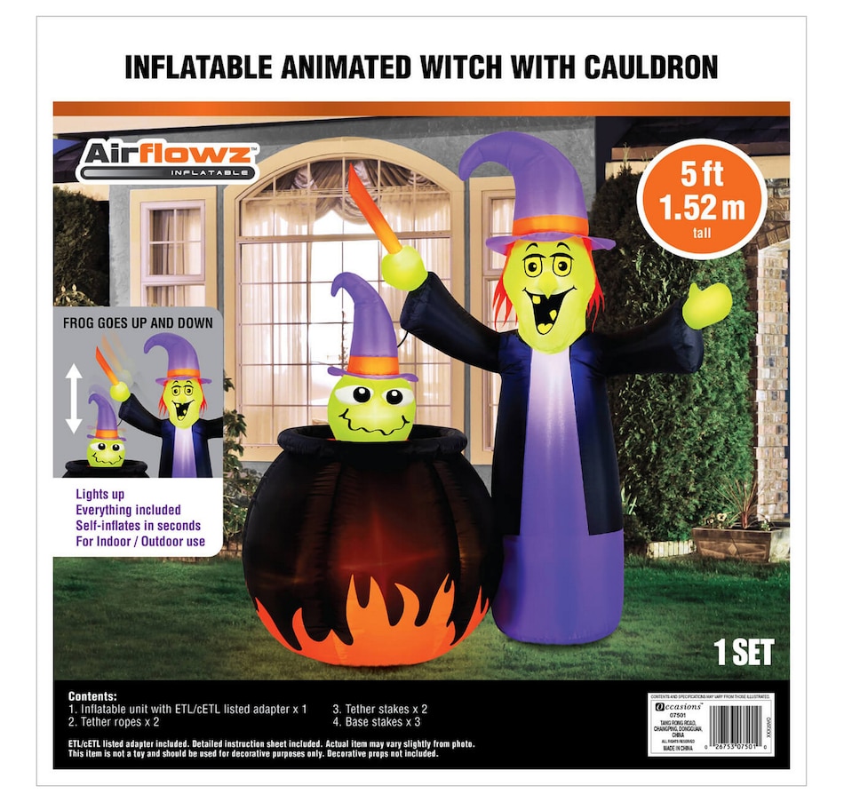 • Occasions Halloween 5' Inflatable Animated Witch with Cauldron