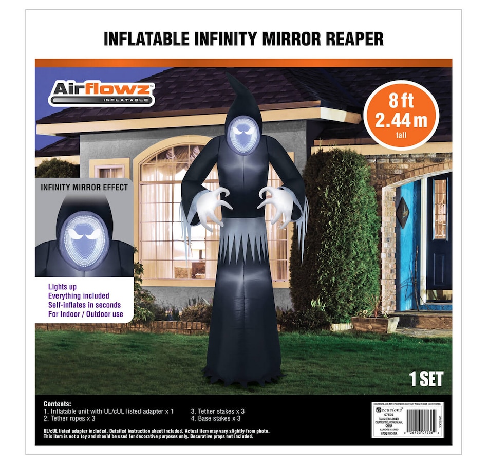 • Occasions Halloween 8' Inflatable Infinity Mirror Reaper, Black and Grey