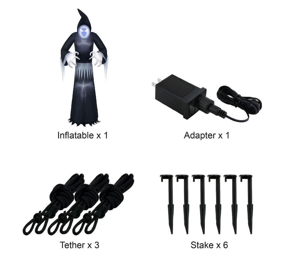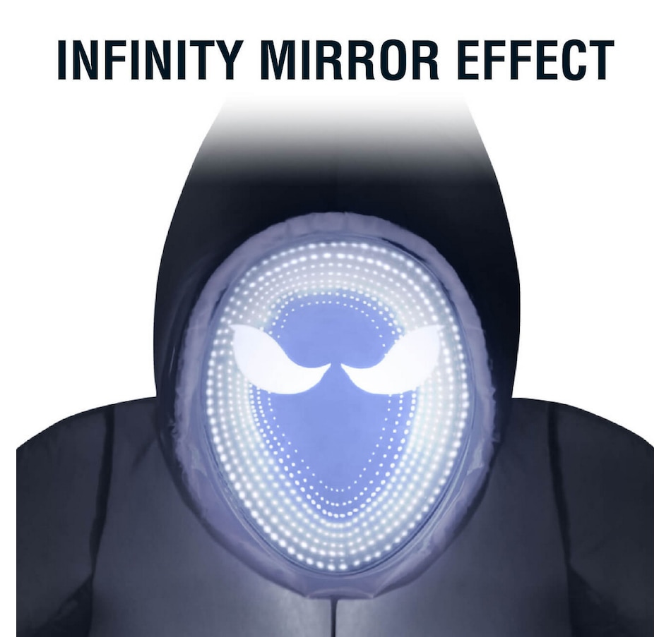 Get ready to elevate your Halloween décor with the Occasions Halloween eight foot inflatable Infinity Mirror Reaper in a striking black and grey. Effortless to set up, it self-inflates in seconds, accompanied by its own blower. Weather-resistant and suitable for indoor or outdoor use, it illuminates with captivating lights, adding an eerie ambiance to your space. When the spooky season ends, it deflates easily for compact storage.