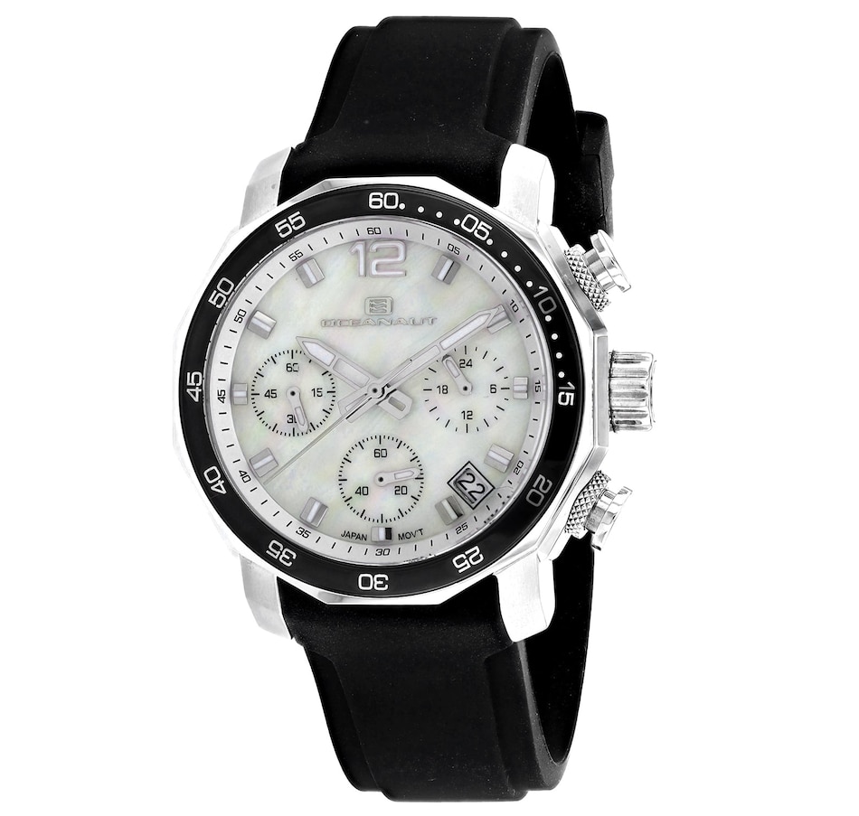 Stainless steel case, Rubber strap, White Mother of Pearl Dial, Quartz movement, Scratch resistant mineral, Water resistant up to 3 ATM - 30 meters - 100 feet