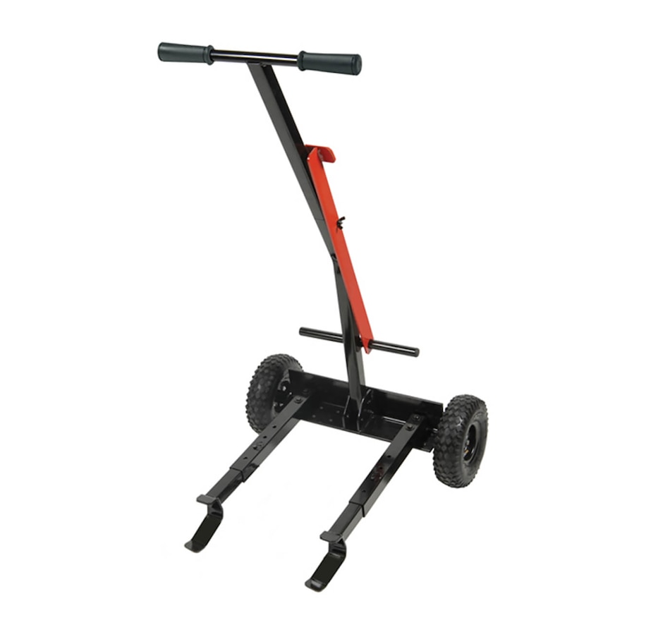 Use this heavy duty tractor lift to make servicing and cleaning your zero turn mower easier than ever! This lift raises the mower into a raised position, and the heavy-duty stabilizer bar keeps the mower upright while cleaning and servicing it. Telescoping lift arms provide extra height when needed.