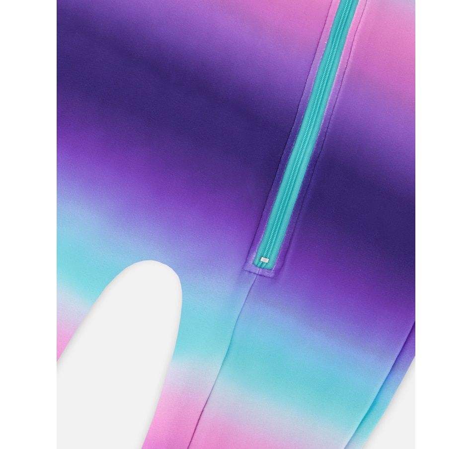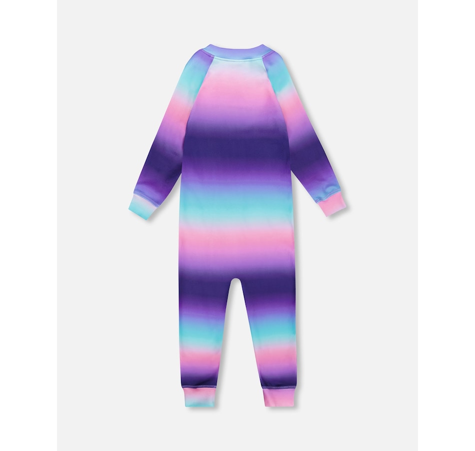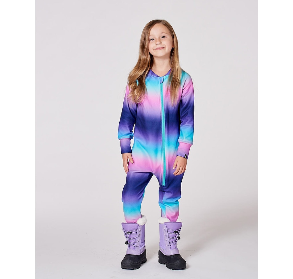 It's essential to be comfortable when wearing a snowsuit, so we've designed this one-piece base layer in super soft and thick brushed jersey to keep little ones warm yet able to move freely. Our thermal underwear jumpsuit features long raglan sleeves, a round neckline, an asymmetrical zipper closure, and an allover purple gradient print.