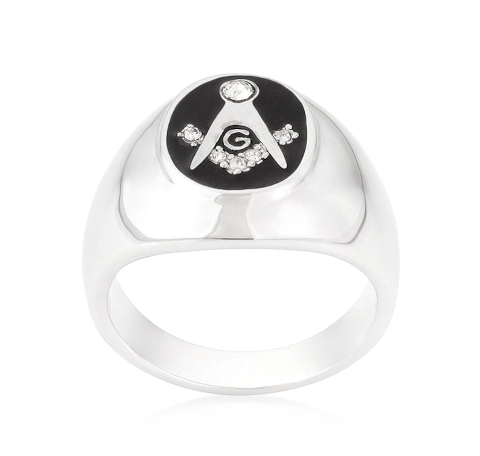 This onyx ring features a masonic emblem with accents in a nice silver tone. Genuine Plating is achieved using an electroplating process that coats the item with heavy layers of a close cousin to platinum which gives our jewelry a platinum luster.