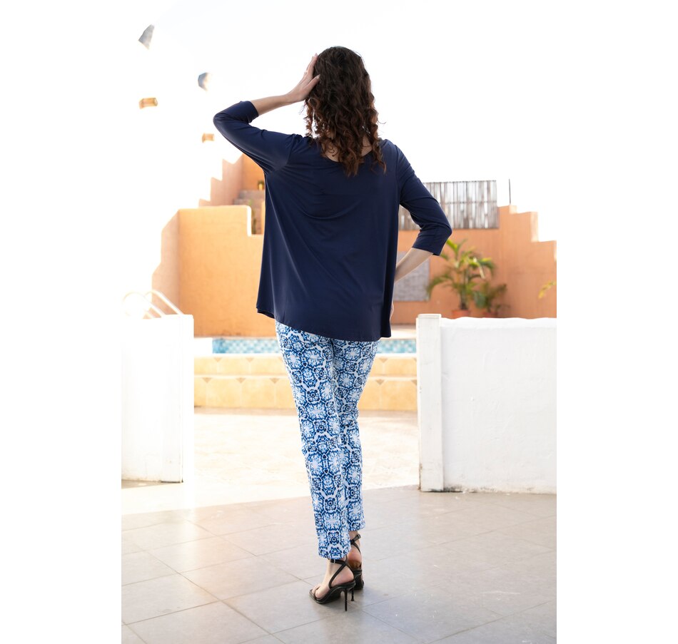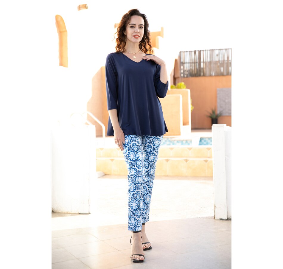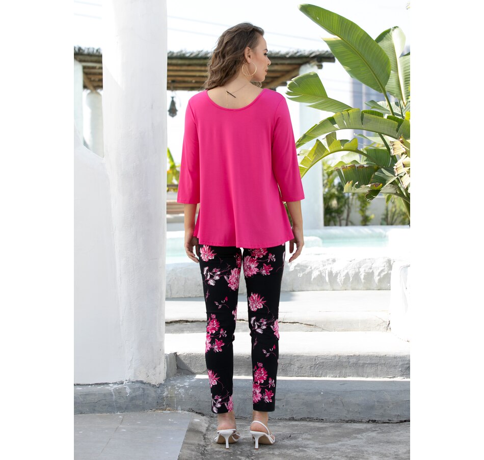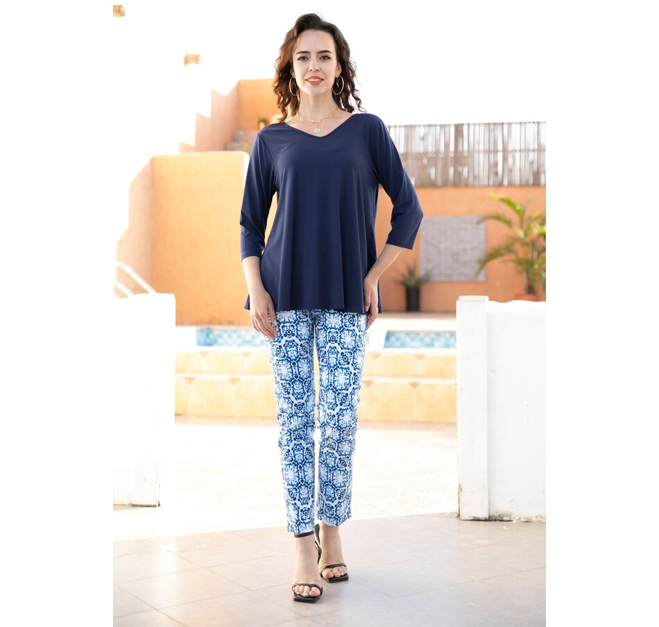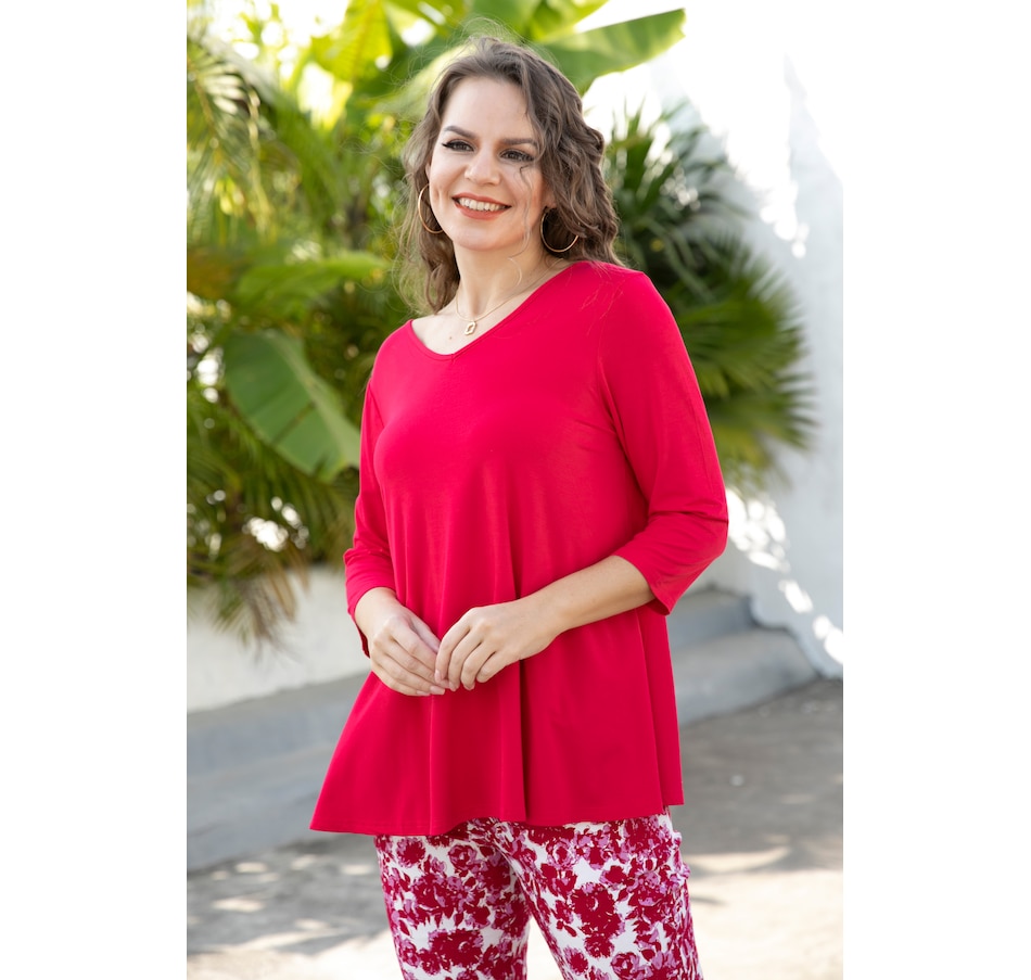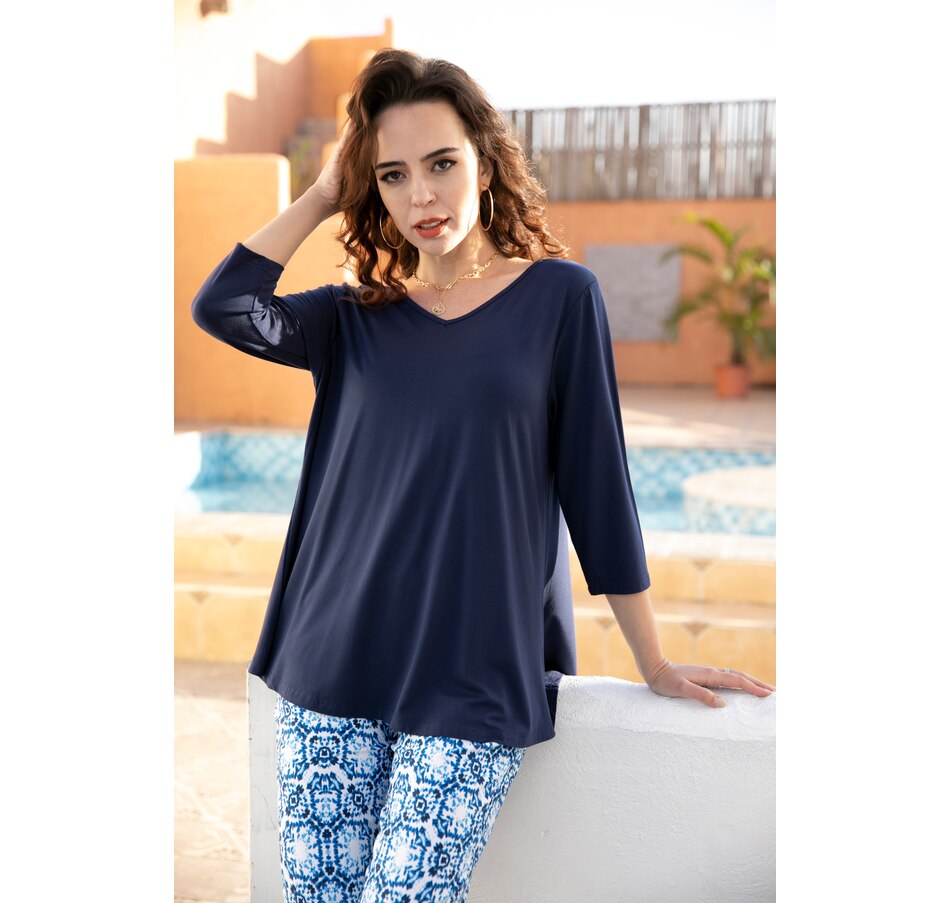 Add an extra sense of style to your look with this 3/4 sleeve reversible bamboo top from Orange Fashion Village.