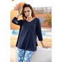 • 3/4 sleeves, soft v-neckline, flowing hemline, relaxed fit