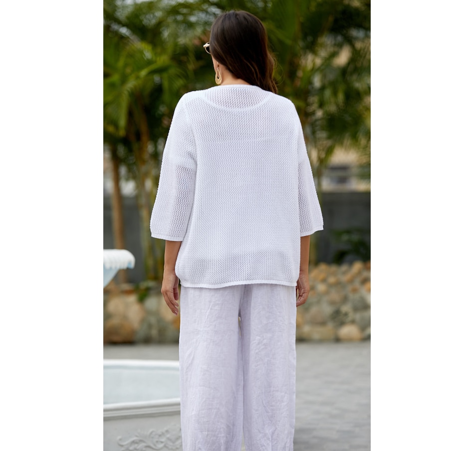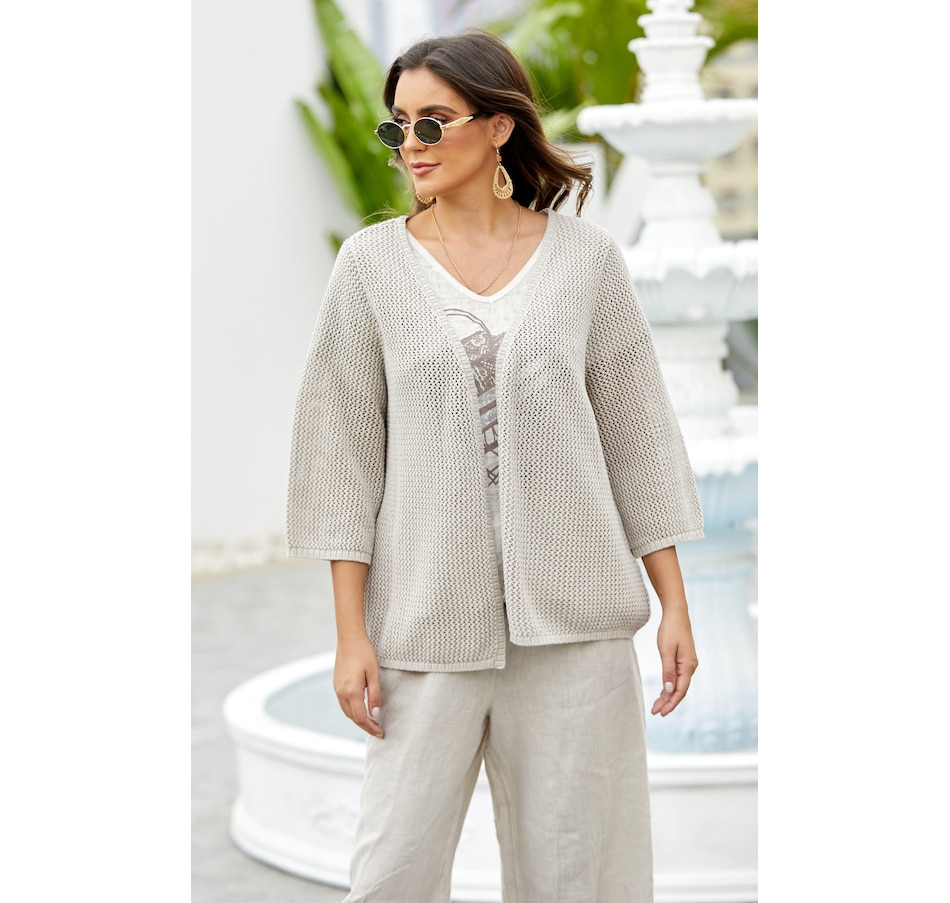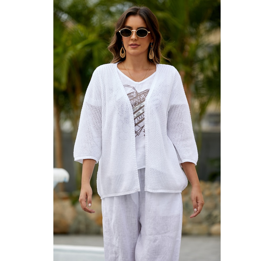 You'll centre your look in sophisticated, versatile style wearing this crochet mesh cardigan from Orange Fashion Village.