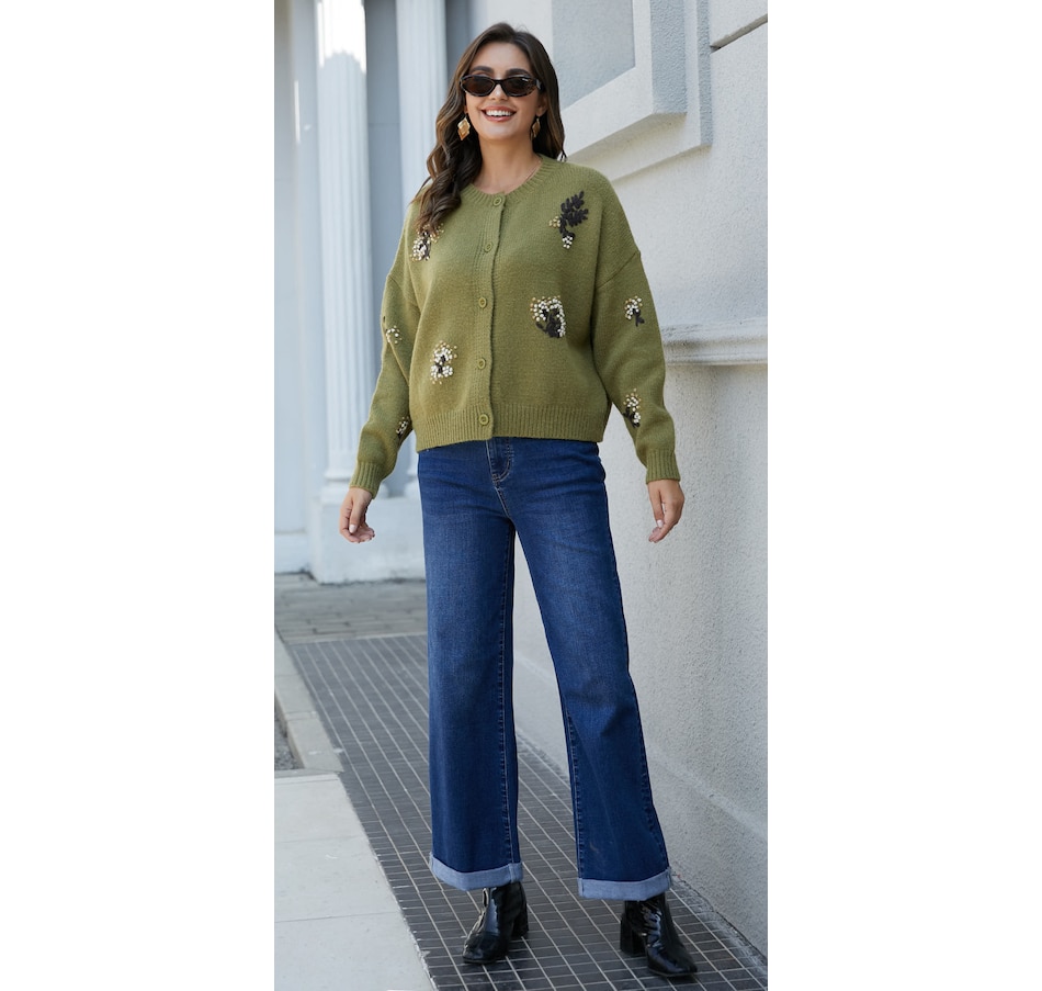 Add to your fall look in versatile style whenever you wear this fleur knit cardigan from Orange Fashion Village