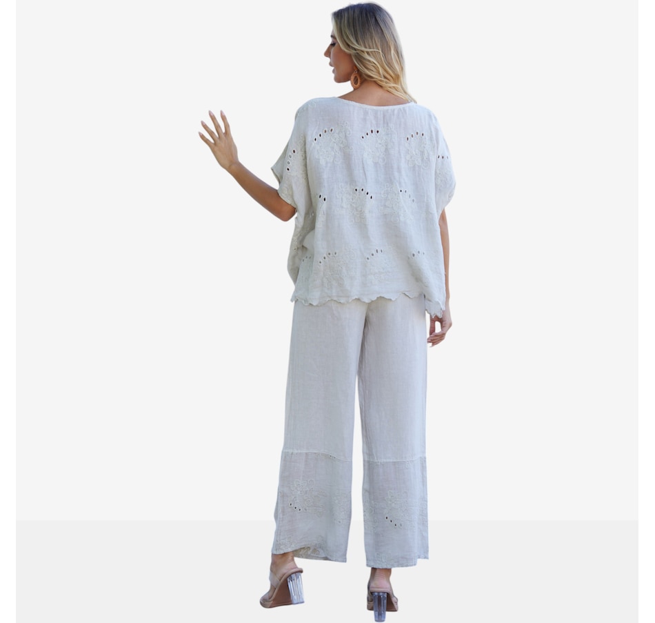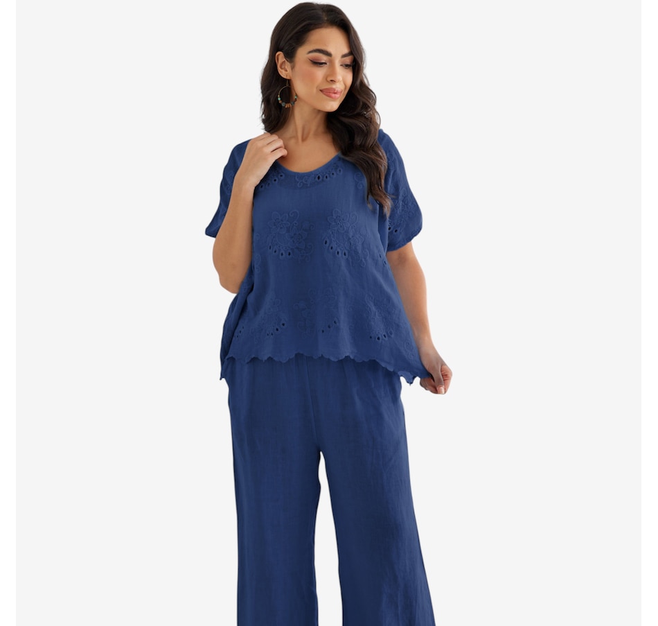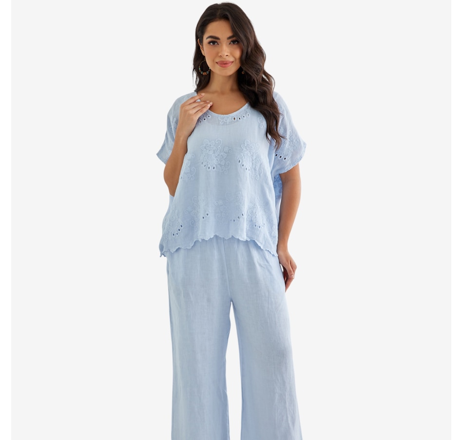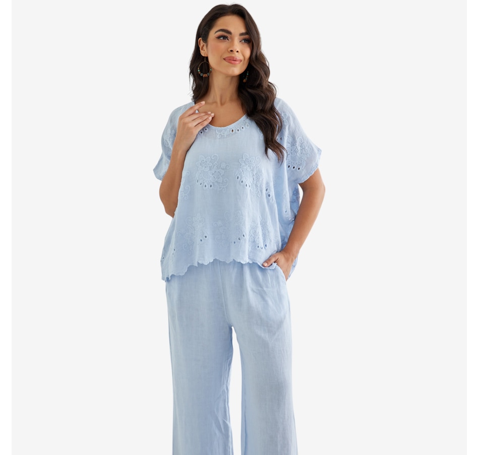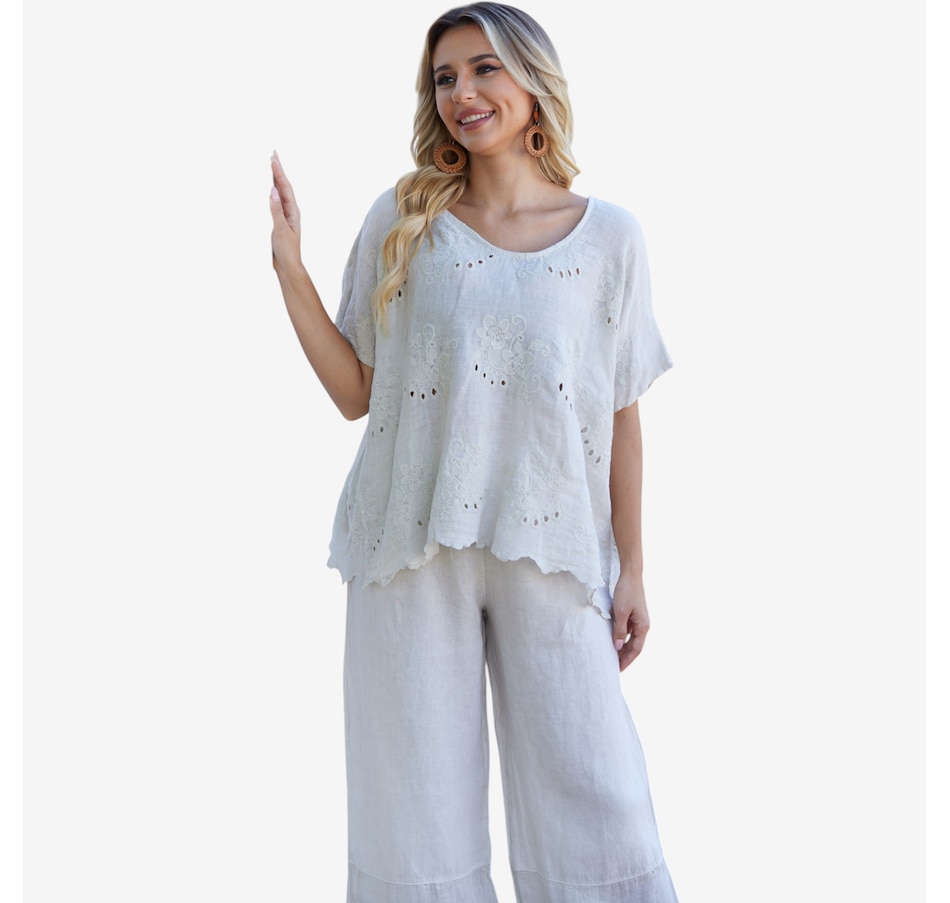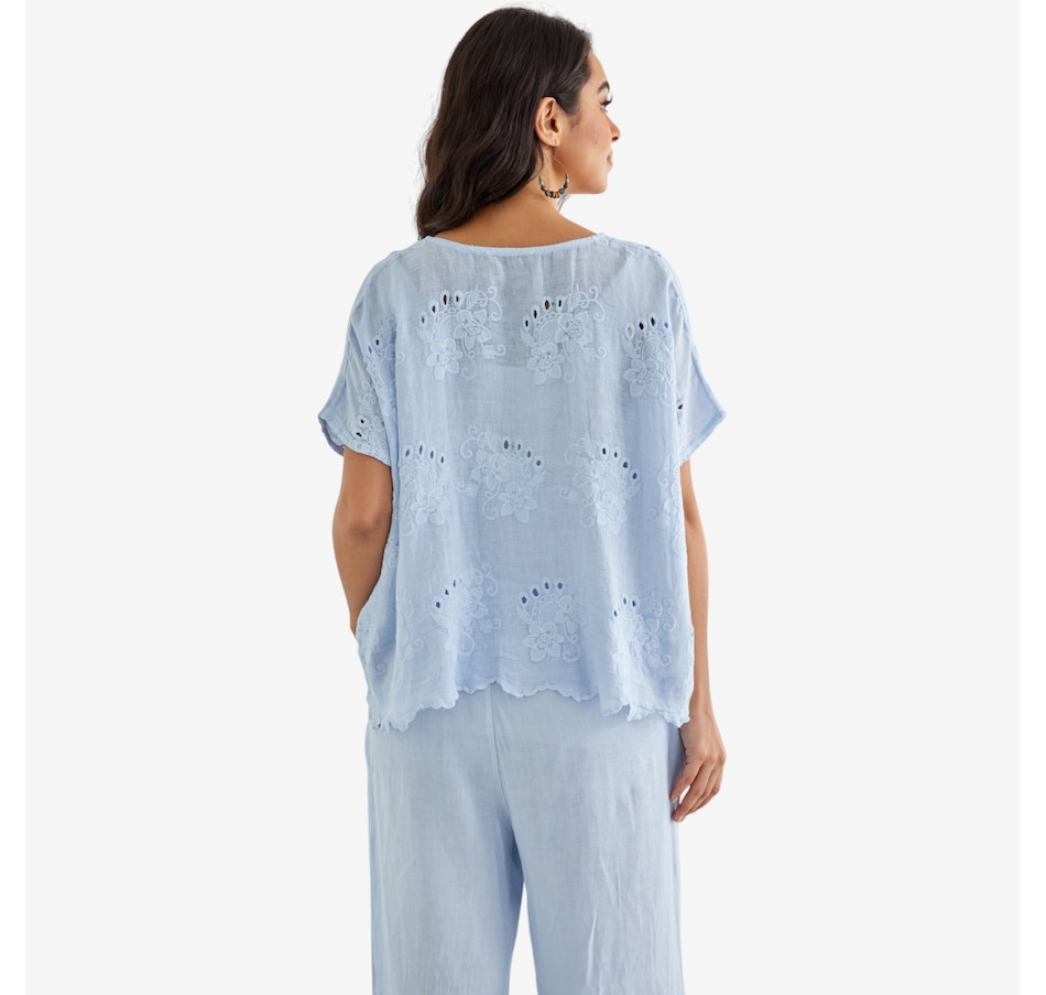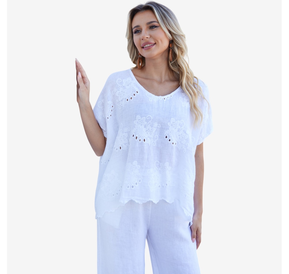 Bring breezy romance and effortless charm to your wardrobe with Lula’s eyelet blouse from Orange Fashion Village, a beautifully crafted top designed to elevate your everyday style. The repeated eyelet patterns add soft texture and airy elegance, while the playful frill‑like hem gently draws toward the centre, creating a flattering, feminine silhouette. Made from lightweight, easy‑wear linen, it’s the perfect piece for warm days, relaxed outings, or layering with your favourite jackets and cardigans. Whether you're dressing it up or keeping it casual, this versatile blouse brings a touch of romantic sophistication to any ensemble.