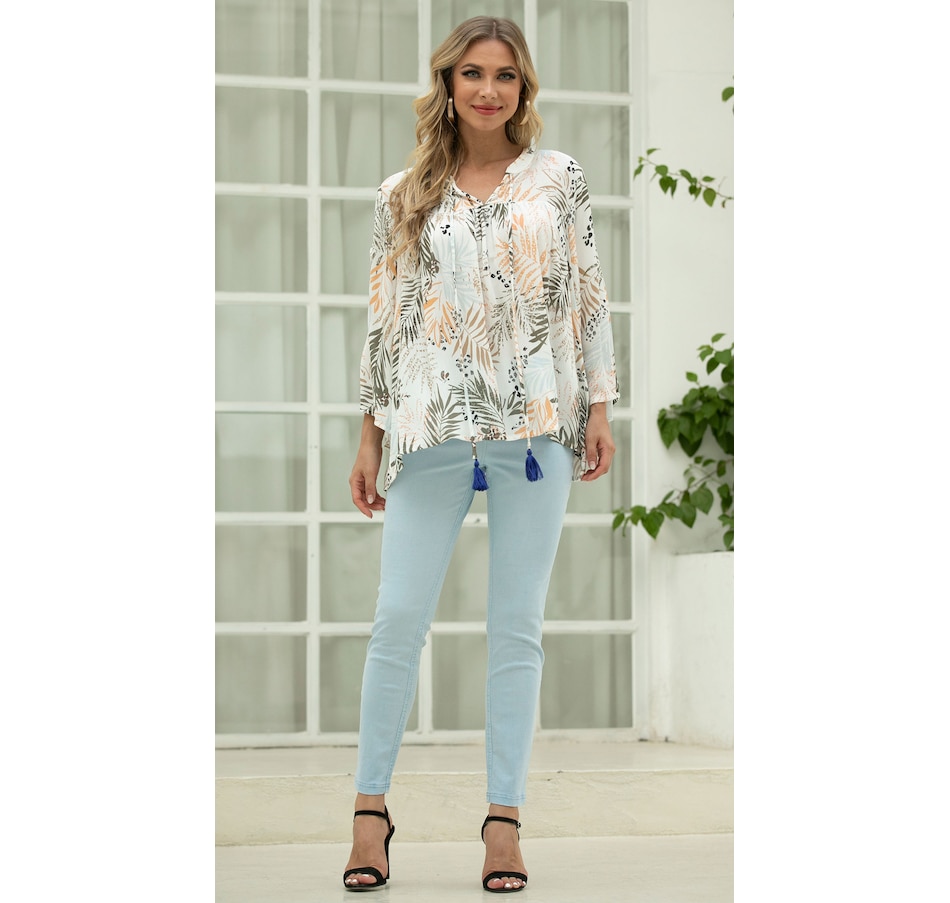Centre your summertime look in colourful style with this rayon leaf top from Orange Fashion Village.