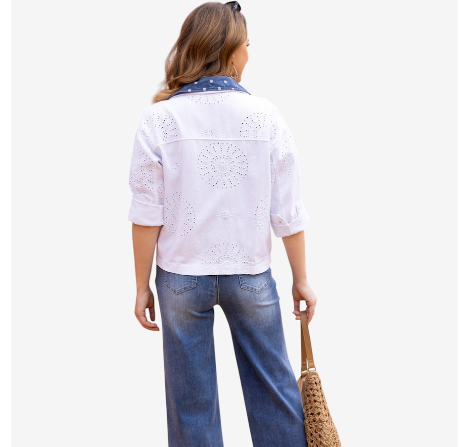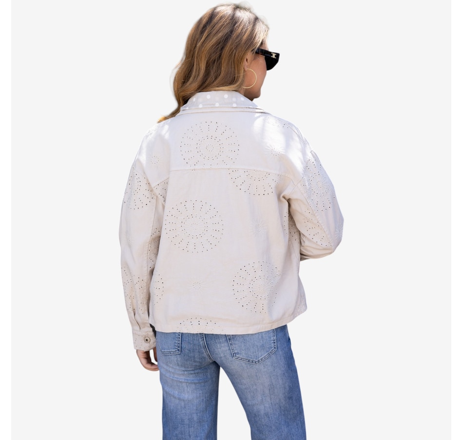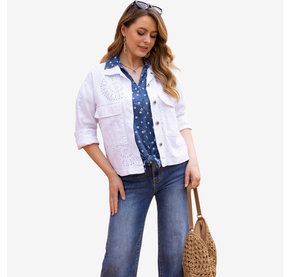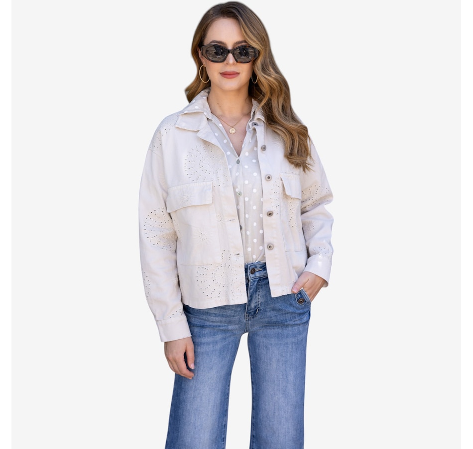 Brighten every outfit with the Sunlit eyelet jacket from Orange Fashion Village, a beautifully detailed layer that brings feminine charm and airy sophistication to your wardrobe. Crafted with delicate eyelet embroidery throughout, this jacket adds texture and elegance while maintaining a light, breathable feel; ideal for warm, sunny days. The loose, comfortable fit makes it an easy piece to throw on over tanks, tees, or dresses, while the button‑front closure and two front pockets blend effortless style with everyday practicality.