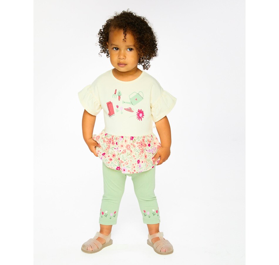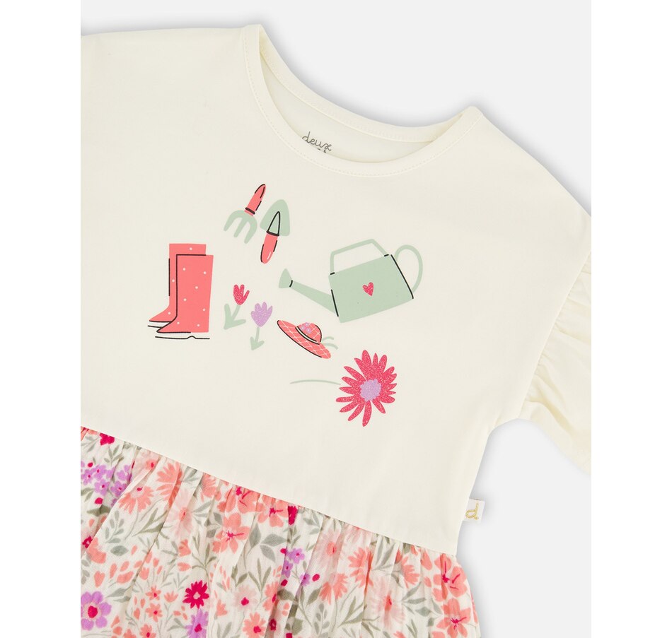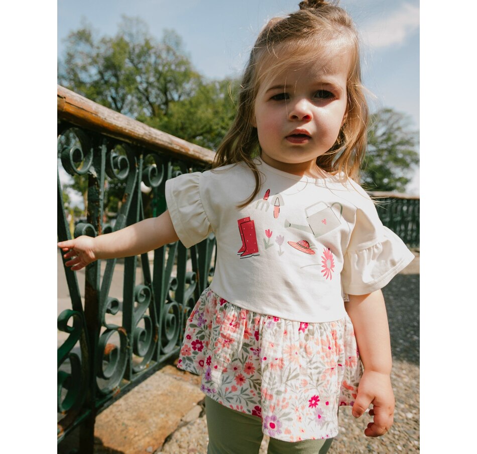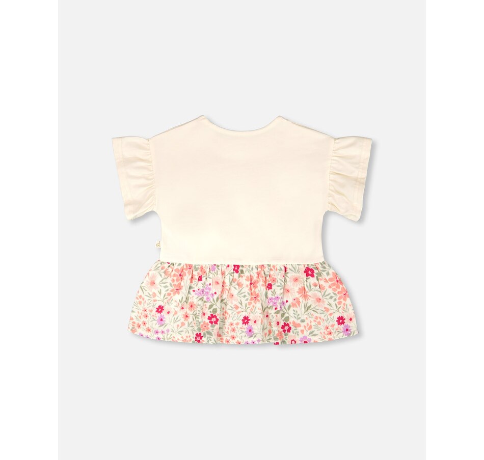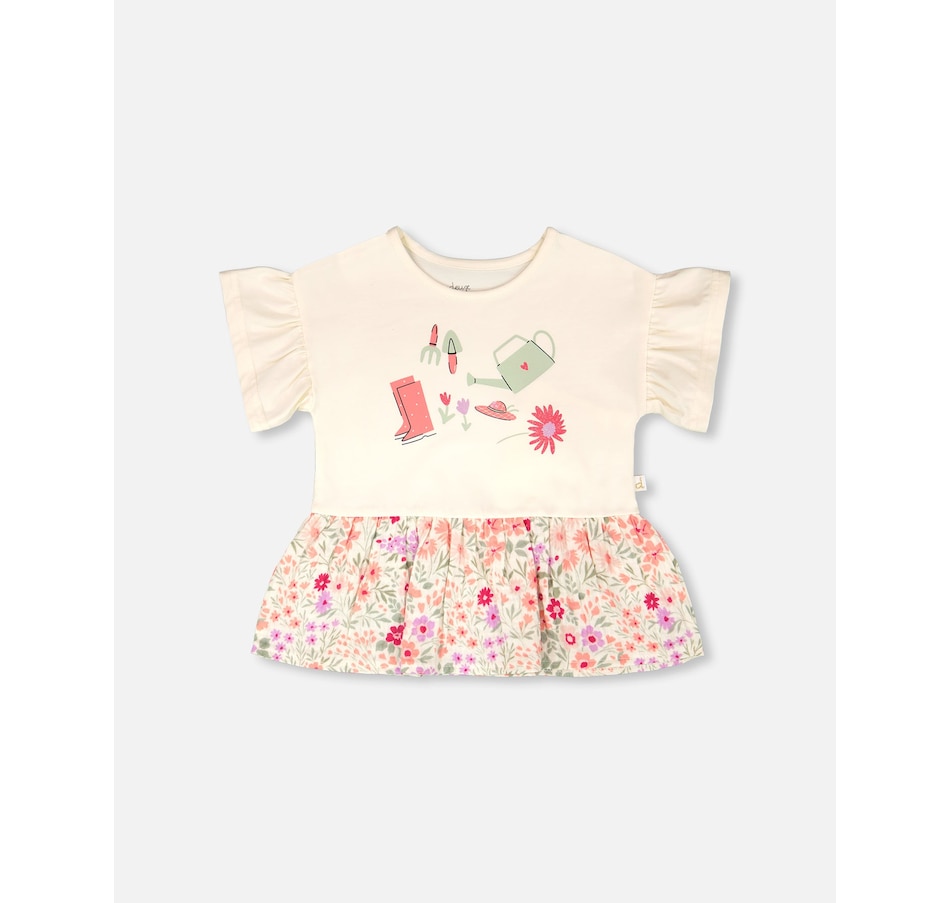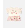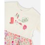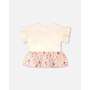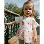 Our organic cotton bi-material tunic beige with flowers print is a charming piece full of playful details. This top features flutter sleeves, a round neckline, and a solid beige jersey top with garden-inspired motifs, contrasted by a flared muslin hem in an allover floral print. Light and comfortable, it’s a perfect choice for girls and baby girls, easy to pair with charming bottoms from our "Little Meadow" collection.