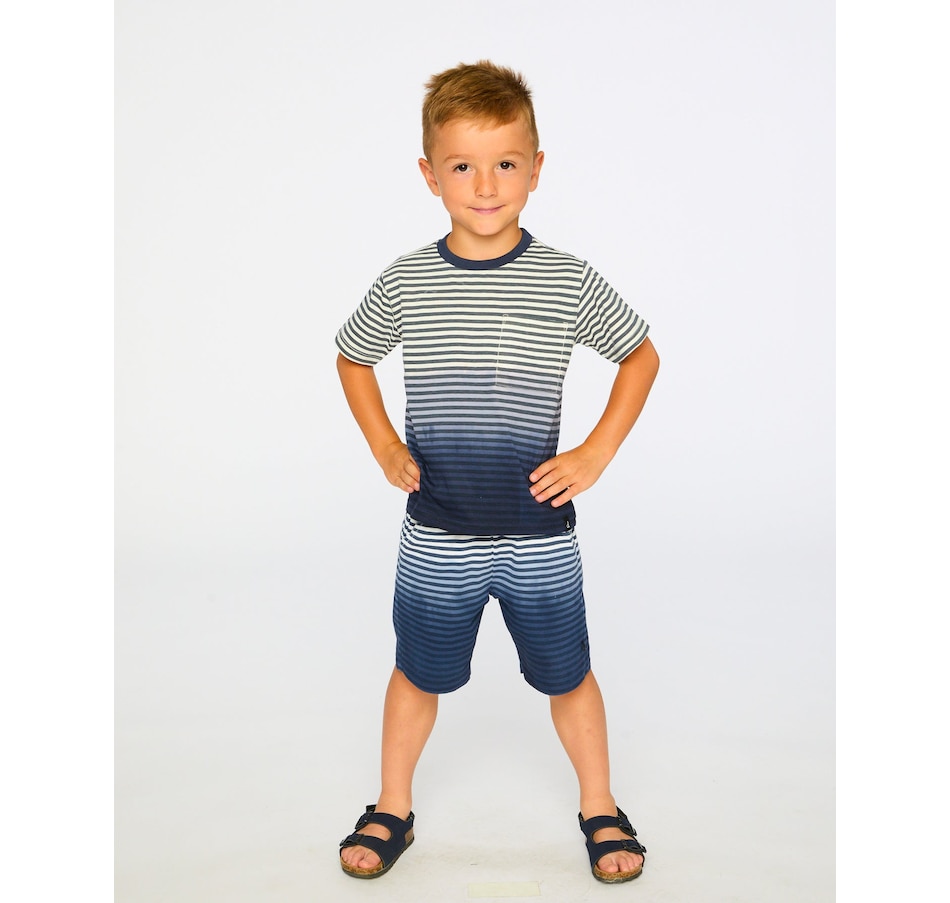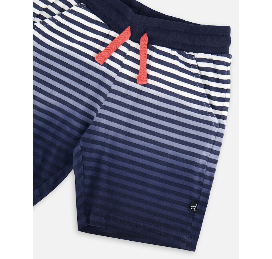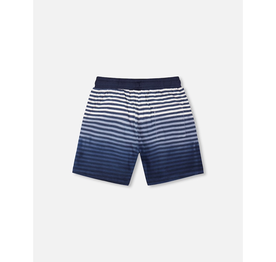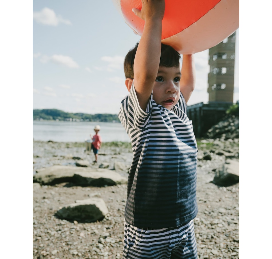 These organic cotton shorts in blue gradient stripes bring a fresh seaside vibe to summer days. These bottoms feature a soft cotton fabric, breathable and gentle, while the elastic waistband with drawstring ensures a perfect fit. Finished with practical side slant pockets, they’re ideal for pairing with any tee from our “Coastal Days” collection.