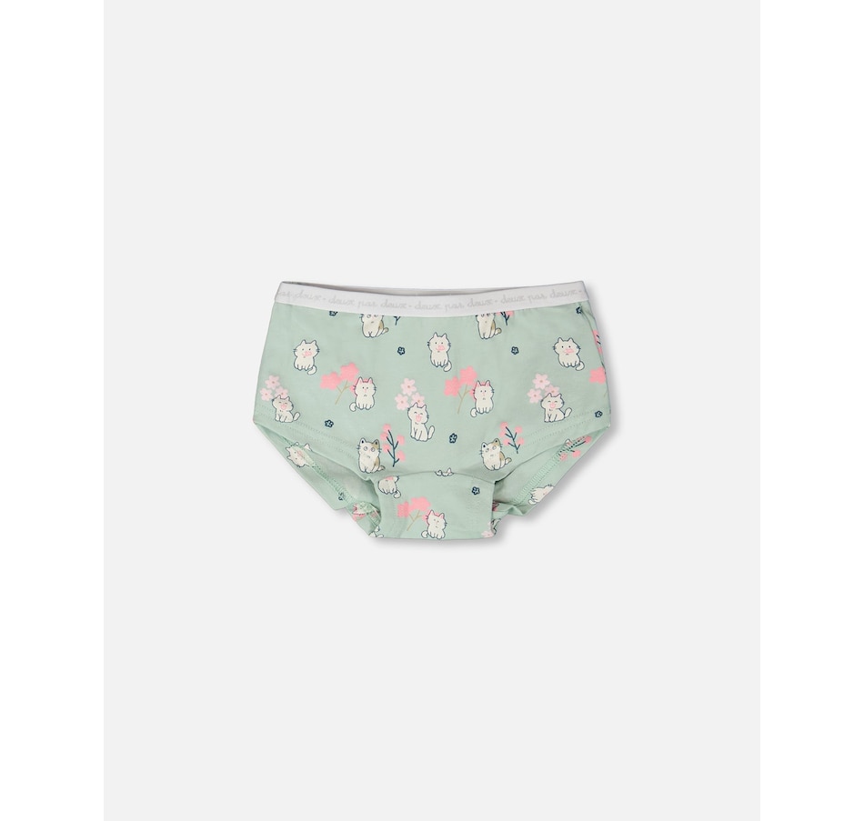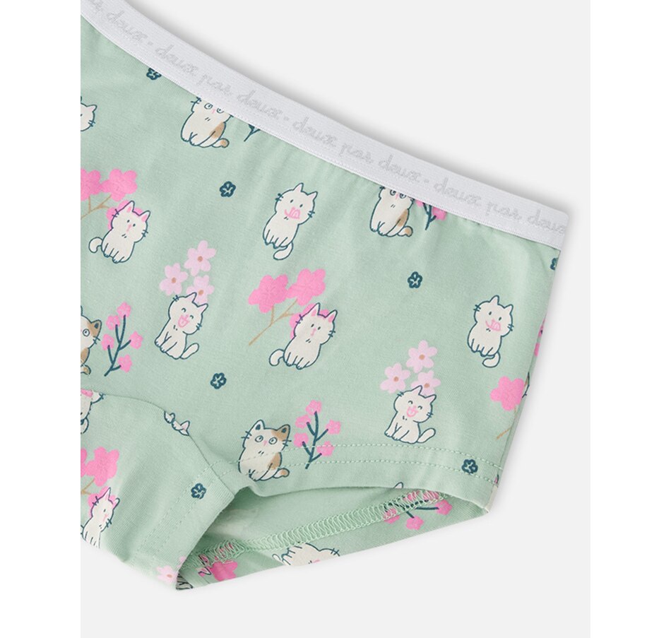This boyshort panty brings a fresh and playful touch with its charming green kitten print. Designed with a comfy elastic waistband and a snug yet gentle fit, this underwear ensures ease of movement all day long. Made with soft organic cotton and a hint of stretch, it combines comfort, durability, and sweetness.
