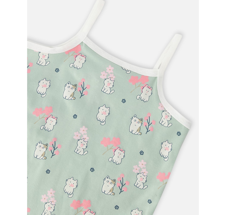 This tank underwear brings a touch of sweetness to everyday essentials. Covered in delicate cute kittens on a green background with subtle beige and pink accents, this top adds a cheerful note to her underwear drawer. Made in soft organic cotton with a hint of stretch, it ensures breathable comfort and a snug fit all day long.