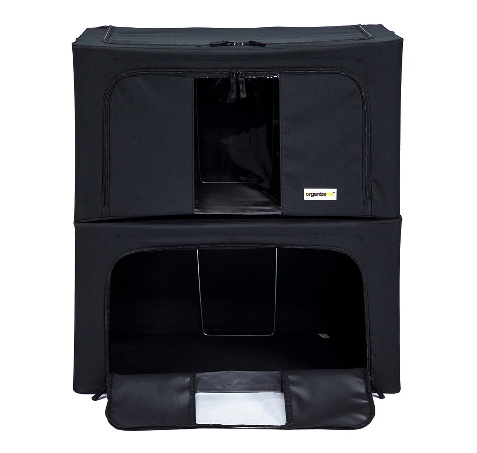 • Dual access entry with 2 zipper compartments: 1 from the top and 1 from the front so that you do not have to unstack or pull down bin to access items inside