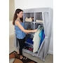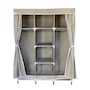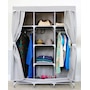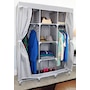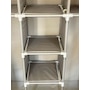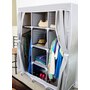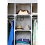 • 2 hanging rods, shelves with fabric walls, fabric covered boards so that contents do not balance on metal bars