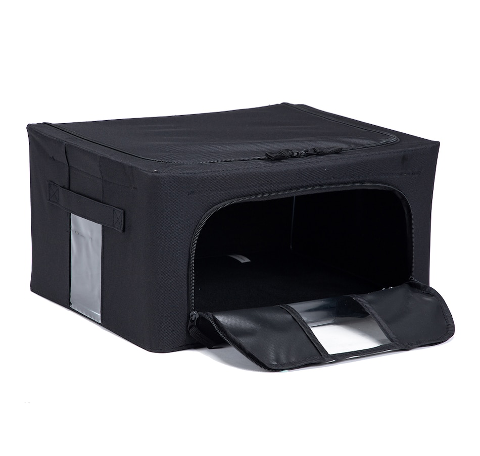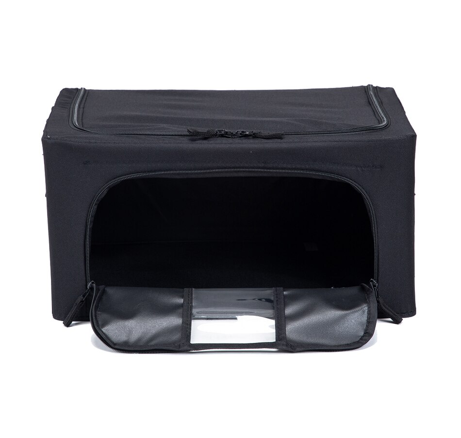 • Dual access entry with 2 zipper compartments: 1 from the top and 1 from the front so that you do not have to unstack or pull down bin to access items inside