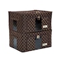 • Composition: plastic zipper with metal zipper pull, reinforced stitched side handles, PVC window, steel metal support bars and frame, MDF base support. Woven jacquard with PVC lining (brown checker); 600 denier polyester with PVC lining (printed and solid colours)