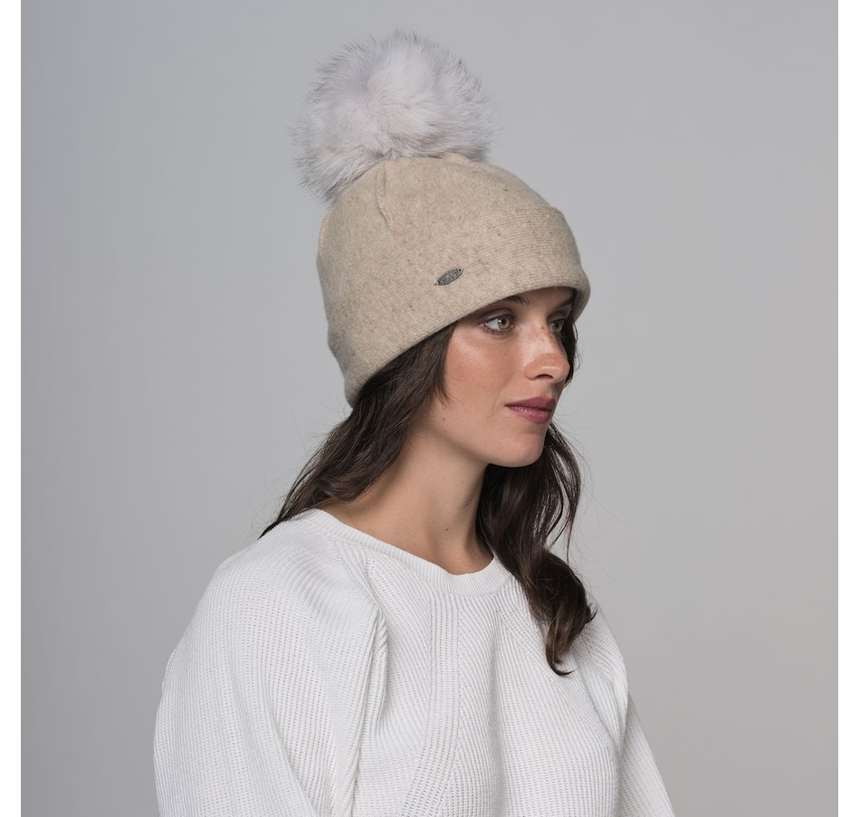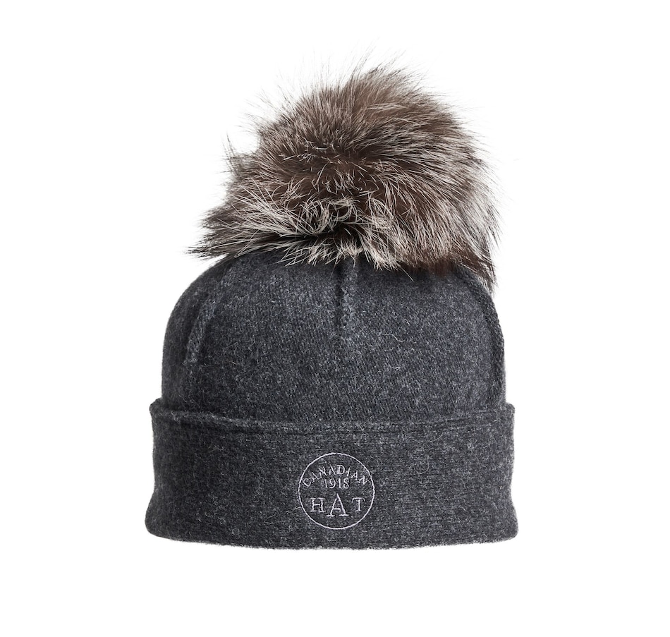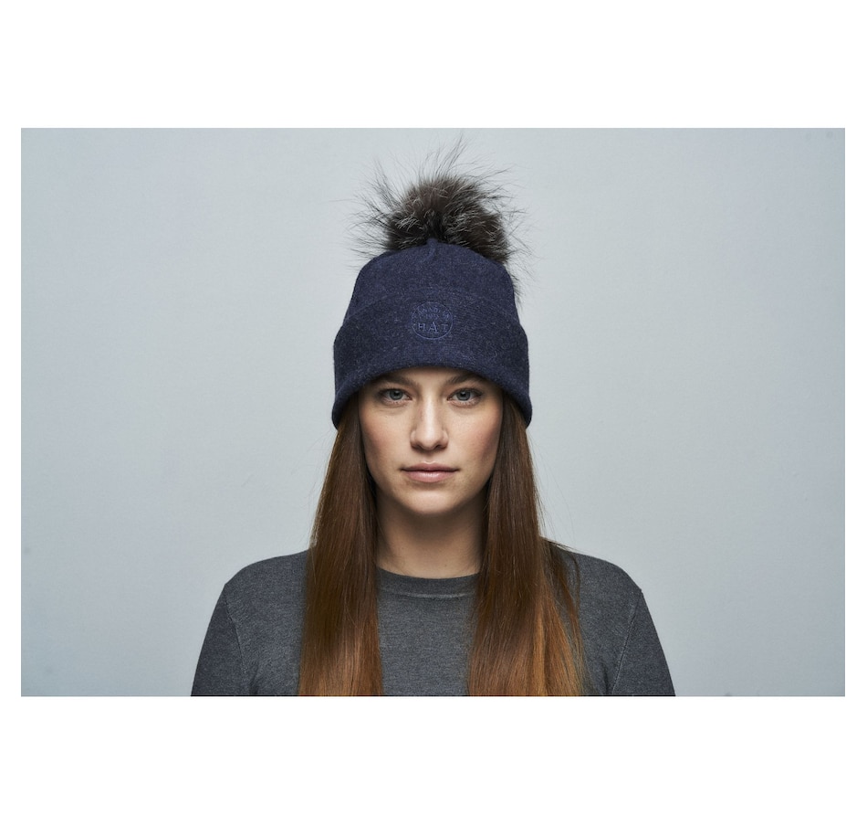 The Orwel 100% wool hat is a luxurious beanie handcrafted in Canadian Hat 1918’s Montréal workshop. Top pleats and hand-finished details enhance the European boiled wool look. Its beautiful cuff keeps your head warm and gives a flattering option to people with longer foreheads. Each of these beanies is uniquely shaped while the small logo charm beautifully finishes this masterpiece. Topped with a removable upcycled fur pompom.