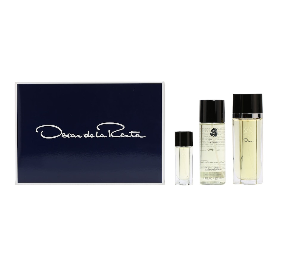 This 3-piece set from Oscar de la Renta contains a 3.4 oz spray, an 8.3 oz body mist, and a .5 oz mini spray. Established in 1977 for ladies.