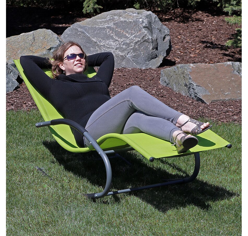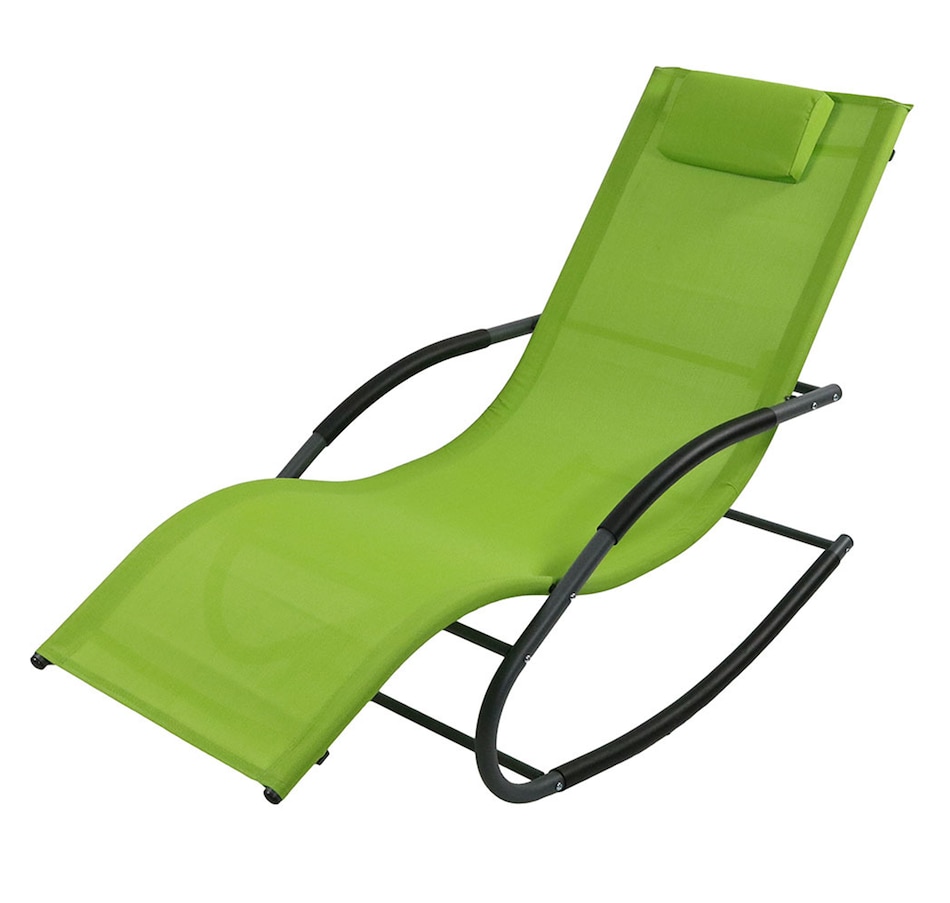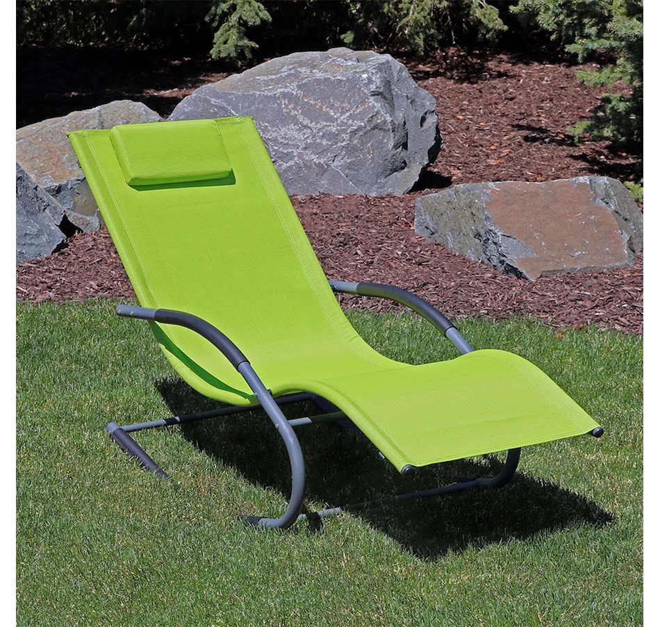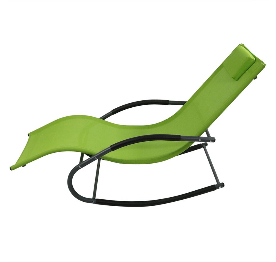 Never sacrifice style for comfort. Add contemporary sleekness and comfortable lounging to any patio, courtyard, or backyard with these rocking wave lounge chairs with pillows attached. Featuring a durable steel tubular frame, this chair sits strong against extensive use and outdoor wear. These chairs are both durable and easy to maintain and use! Plus, the material dries fast which makes the cleaning process for dirt and spills even easier. The pillow sits at the head for extra head support. Place this stylish and comfortable lounge chair on your patio to enjoy relaxing evenings, by the poolside for basking in the sun, or on the front porch to enjoy the fresh air while watching the sun go down. This lounger comes in other colors so you can match this chair to your existing outdoor aesthetic easily.