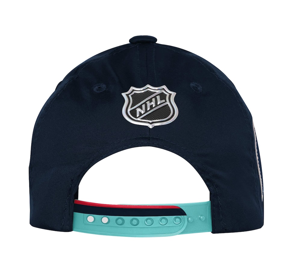 Get your young fan ready for draft day with this Seattle NHL Draft podium adjustable hat. Featuring a structured design and a curved brim, this cap delivers a classic look and all-day comfort. The Kraken logo is proudly displayed in raised embroidery on the front, letting everyone know where their loyalty lies. With a convenient snapback closure, it's easy to adjust for the ideal fit. Officially licensed by the NHL, this hat is a must-have for any budding Kraken supporter!