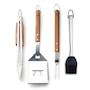 Be equipped with top of the line essentials this grilling season with the Outset Verde grill tool set! This set comes with a large spatula, tongs, fork, and sauce brush so that you have everything you need to be a grill master! Each tool is made from durable stainless steel, and most include an ergonomic bamboo handle so they will serve you well for countless cookouts to come. The spatula comes with an extra-large flipping surface so even larger foods will be a breeze to cook! When you are done and cleaned up, utilize the hanging loops for easy storage and your BBQ tool set will be ready for the next time you need them!