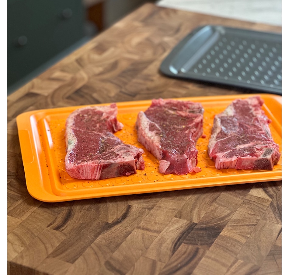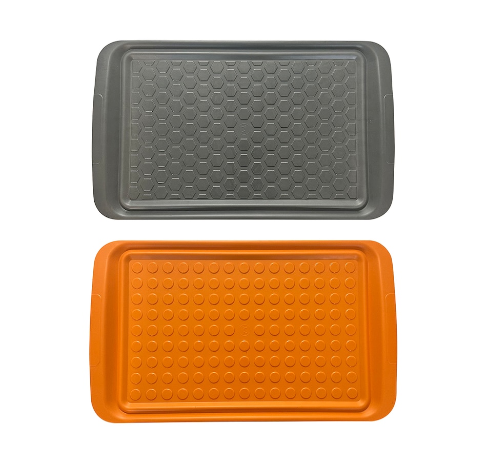This set of two grill prep trays make prepping and serving your next barbecue a breeze. The trays are strong and lightweight so they can support larger servings while still being easy to transport, and the textured and grooved base keeps food in place and retains juices. Colour-coding makes it easier to avoid cross-contamination of raw and cooked food, which makes this set ideal for prepping and serving! After everyone is fed and happy just hand wash or put the trays in the dishwasher. And with melamine construction, you never have to worry about lingering odours or flavours!