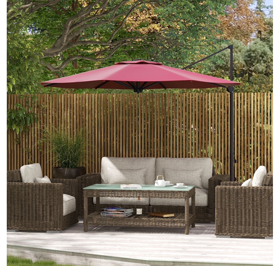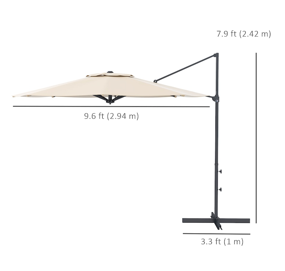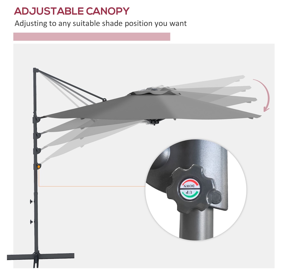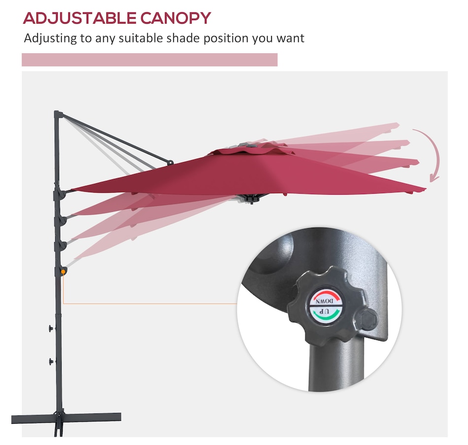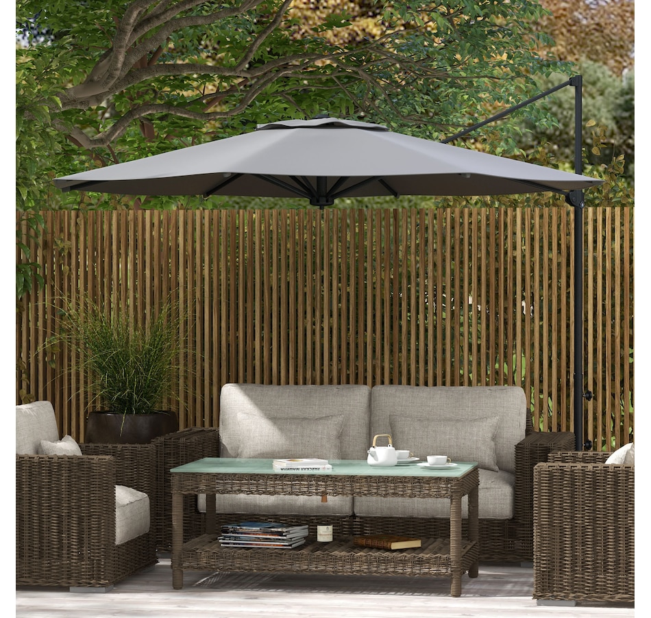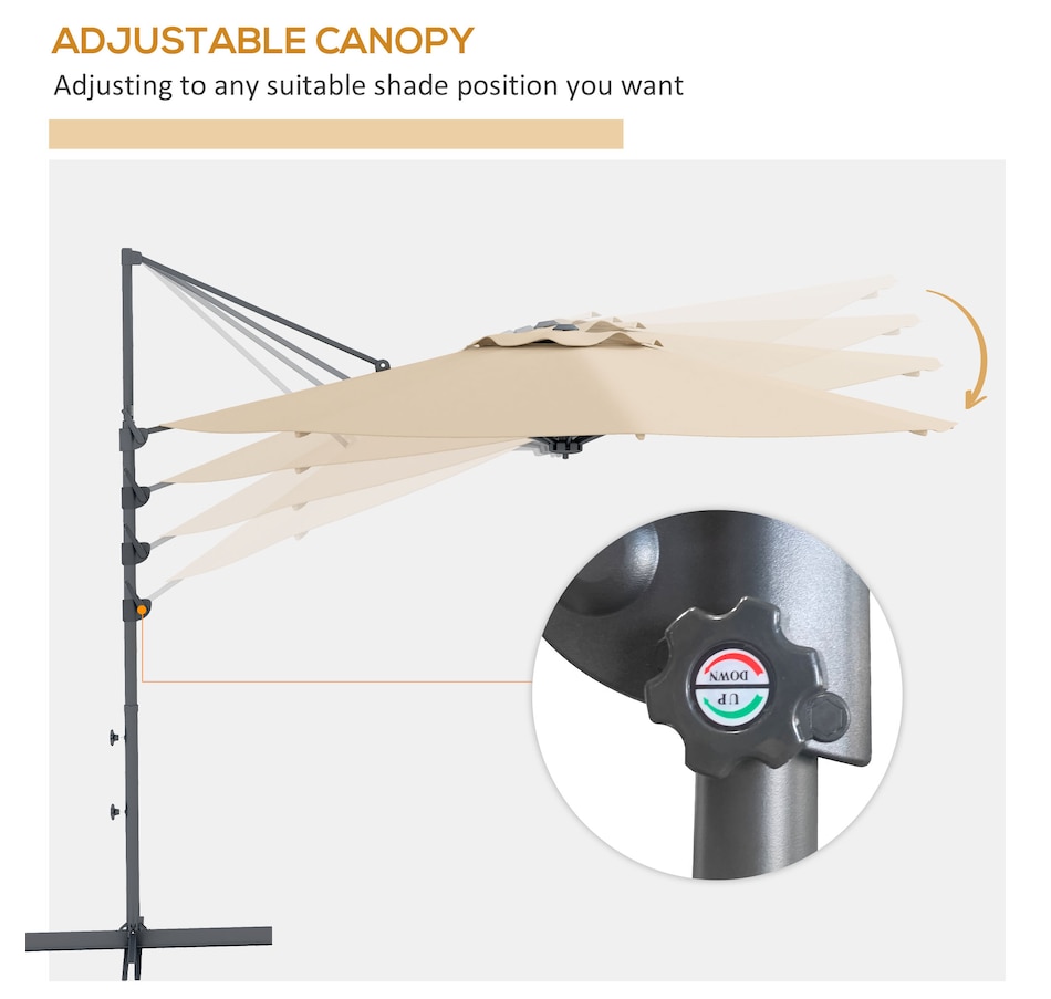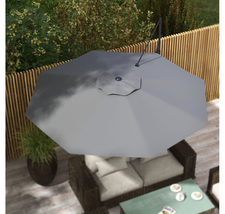 Keep yourself protected whilst enjoying the sun all day with this cantilever patio umbrella from Outsunny. Connected to the frame via eight ribs for extra strength. A crank mechanism for effortless opening and closing, this parasol offers you ample shade