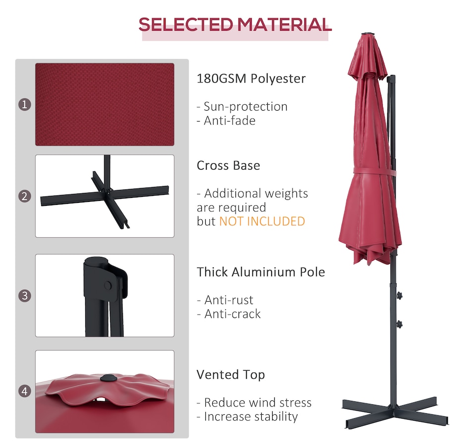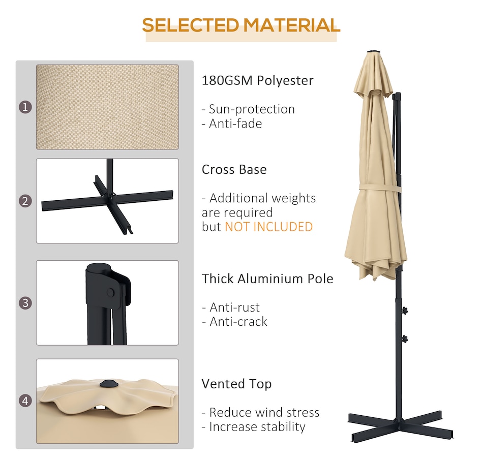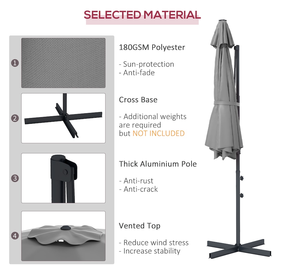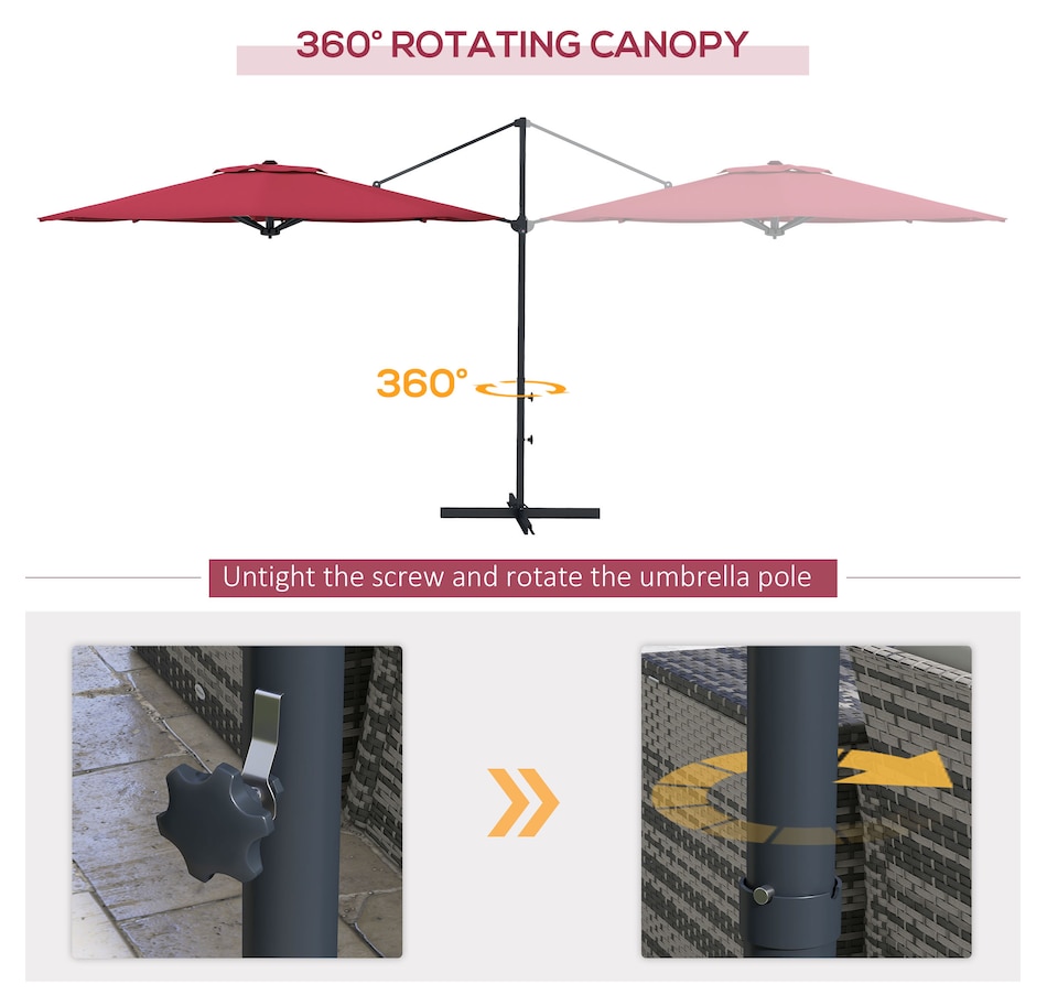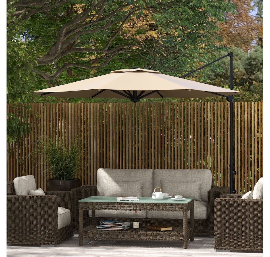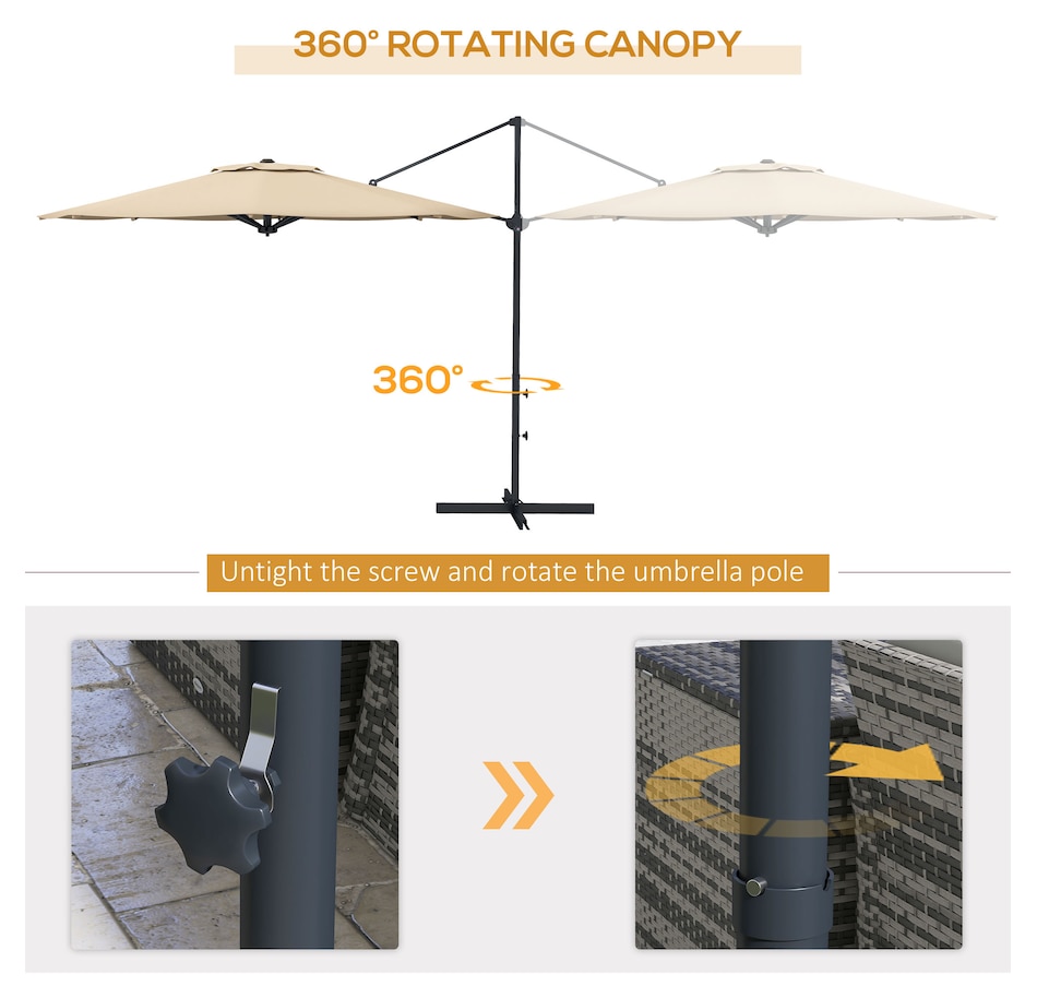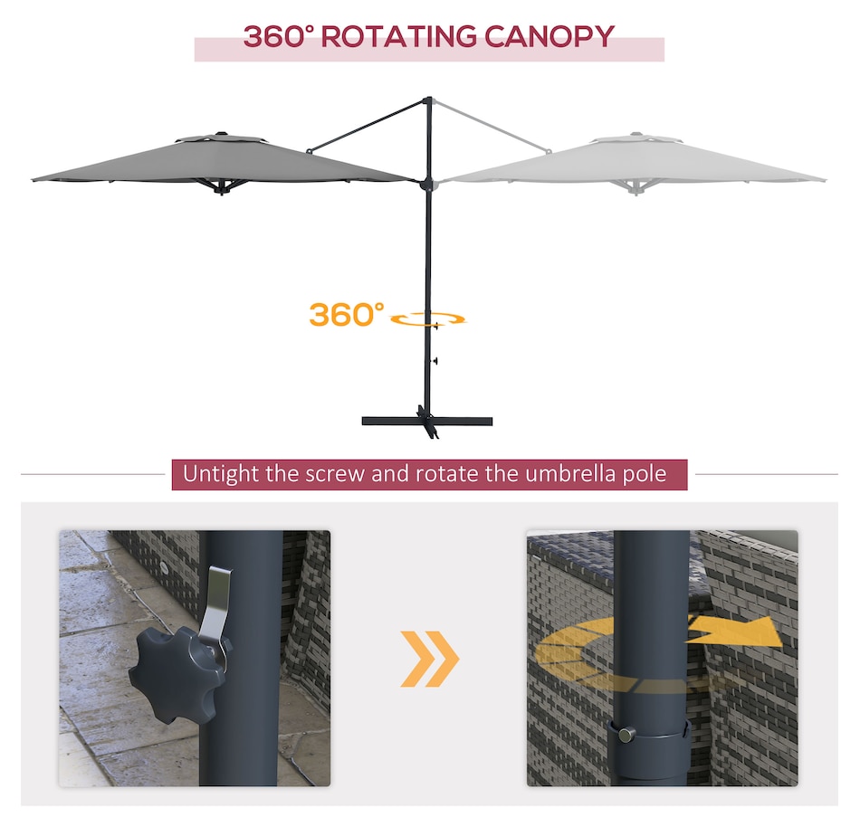 Keep yourself protected whilst enjoying the sun all day with this cantilever patio umbrella from Outsunny. Connected to the frame via eight ribs for extra strength. A crank mechanism for effortless opening and closing, this parasol offers you ample shade