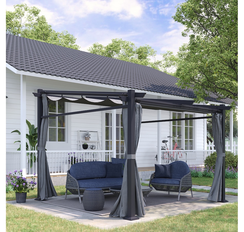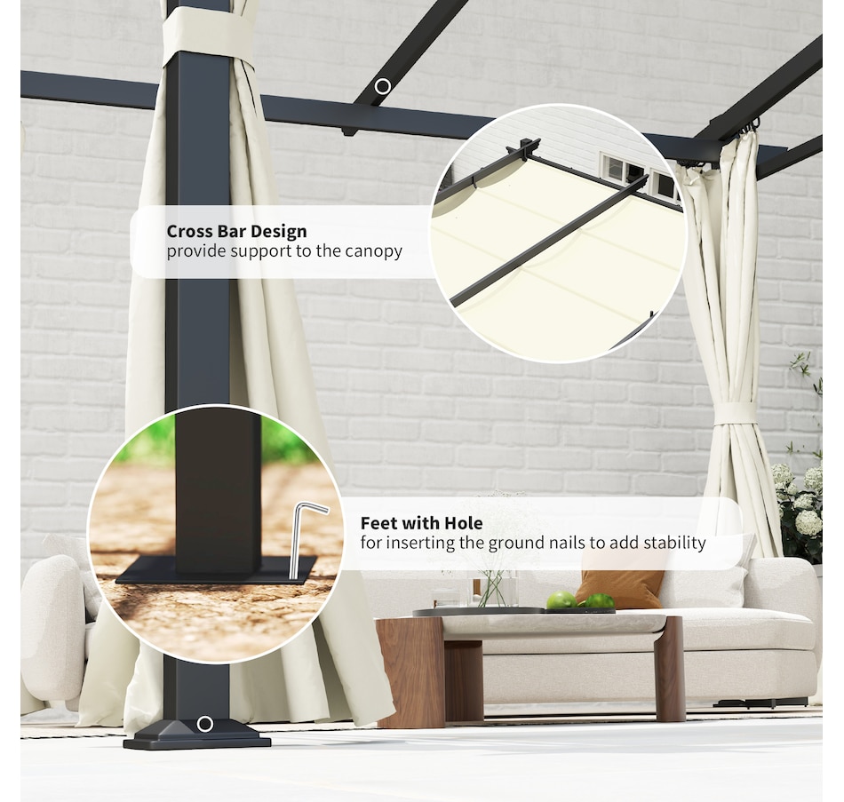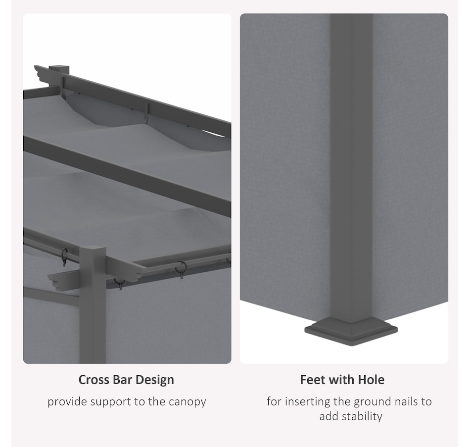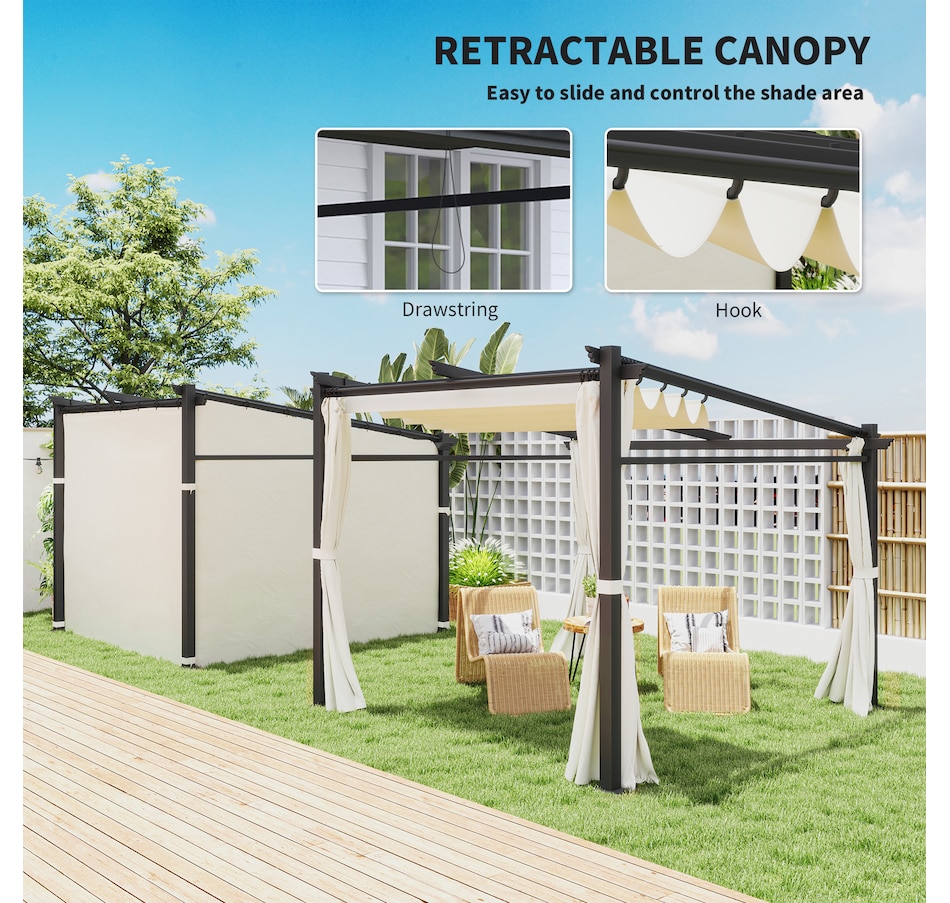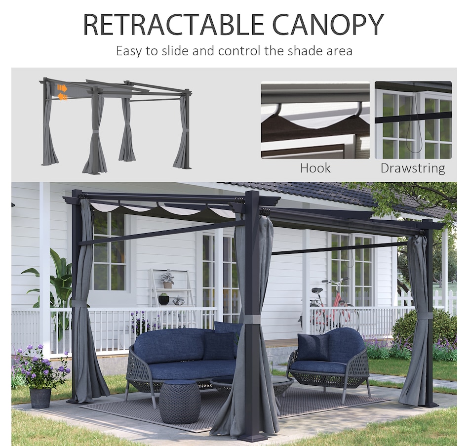 This Outsunny retractable pergola gazebo allows you to adjust the canopy to enjoy the sun or relax in the shade. Create a shaded area to enjoy a cold drink on a hot day. The heavy-duty metal frame construction offers added durability. Add this pergola canopy gazebo to your garden and enjoy a safe outdoor space!
