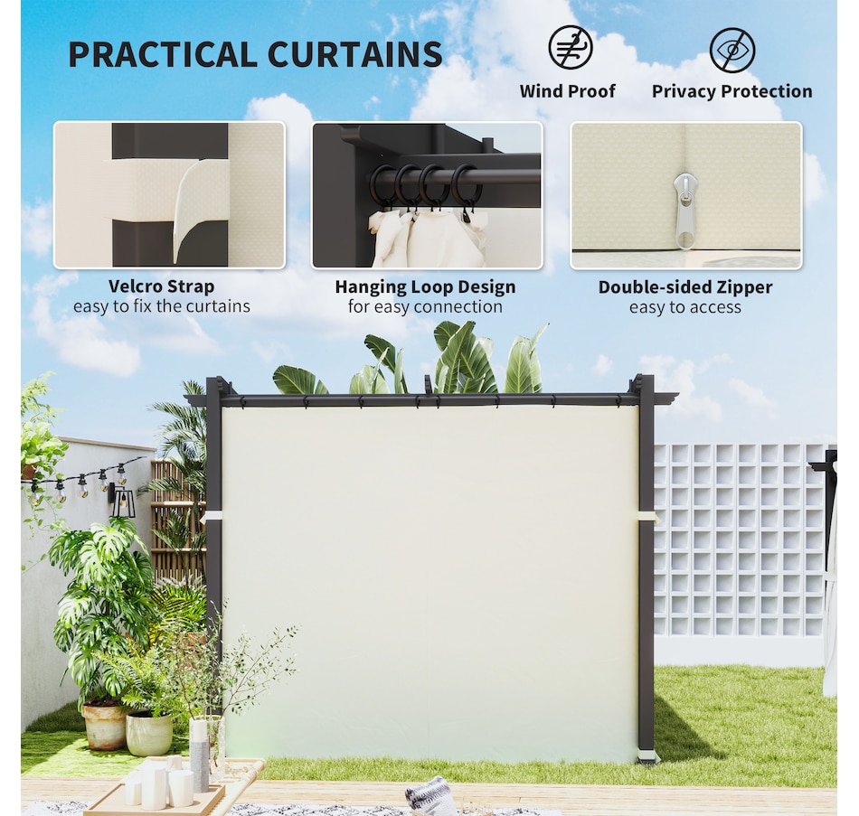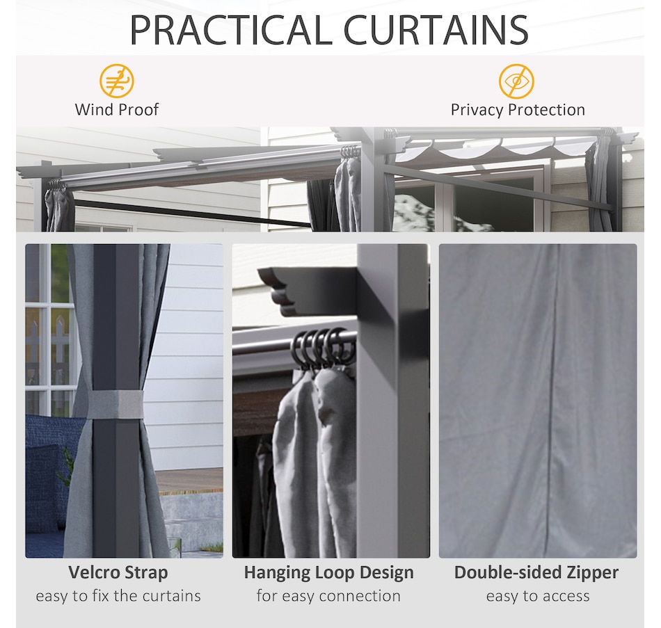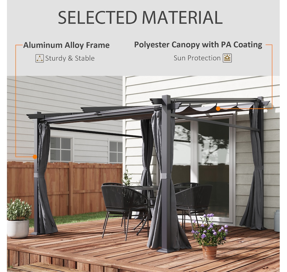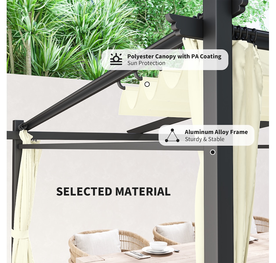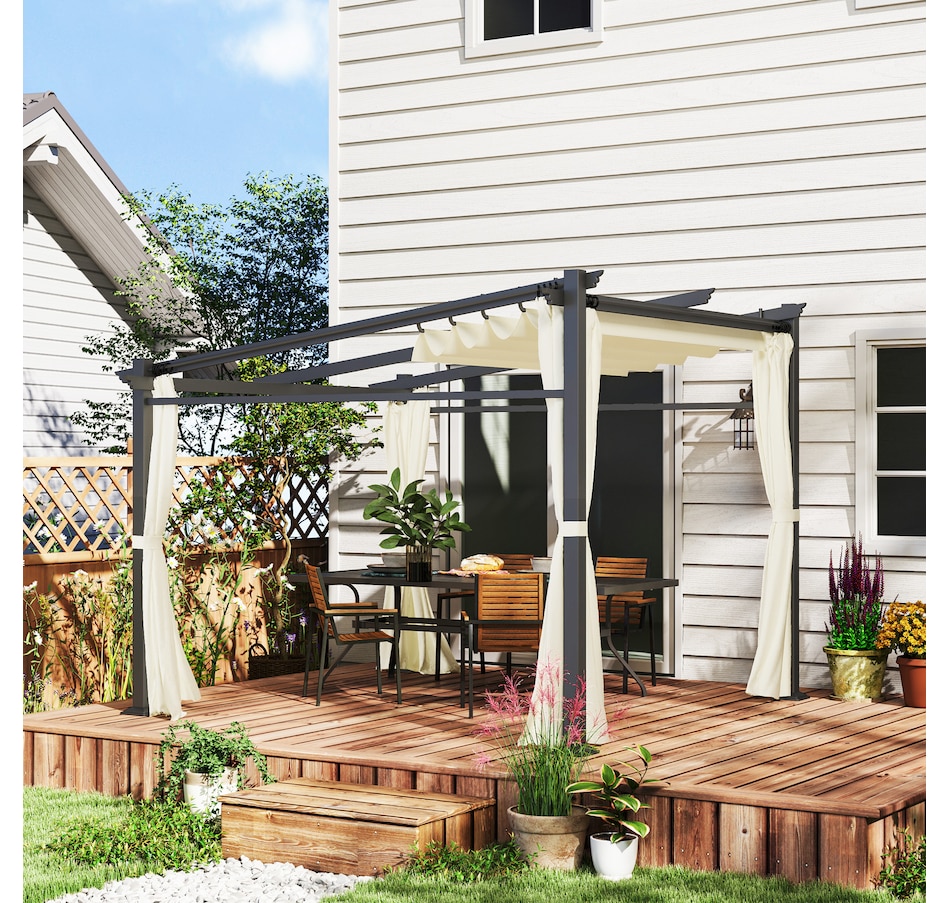 This Outsunny retractable pergola gazebo allows you to adjust the canopy to enjoy the sun or relax in the shade. Create a shaded area to enjoy a cold drink on a hot day. The heavy-duty metal frame construction offers added durability. Add this pergola canopy gazebo to your garden and enjoy a safe outdoor space!