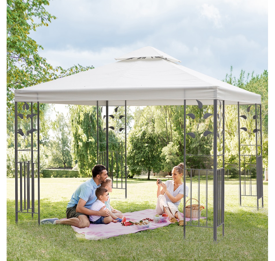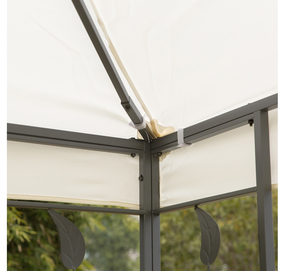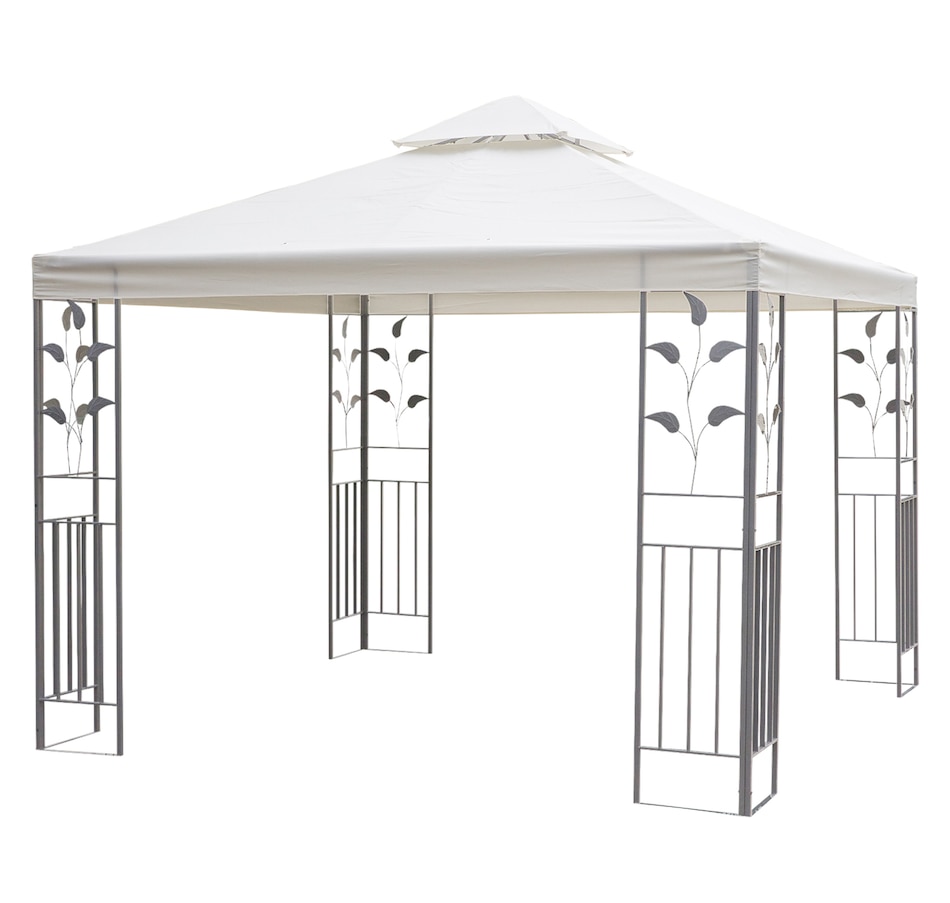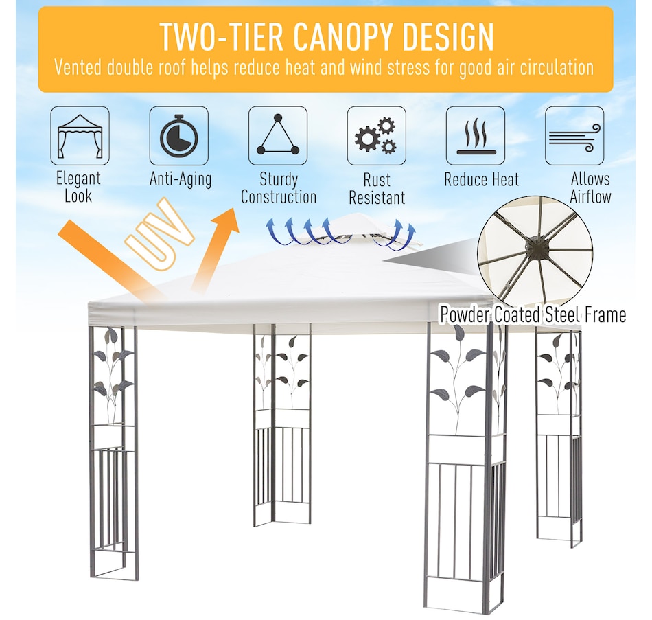 Add an elegant touch to any outdoor space with the Outsunny 9.8' x 9.8' backyard gazebo, the perfect sun shelter for any occasion! With a clean-looking cream white colored top complementing the beautiful black frame, this classic and classy color scheme will fit with any location. Decorative frame supports in an ornate style make the deck canopy an ideal choice for adding class to any outdoor setting.Features: