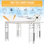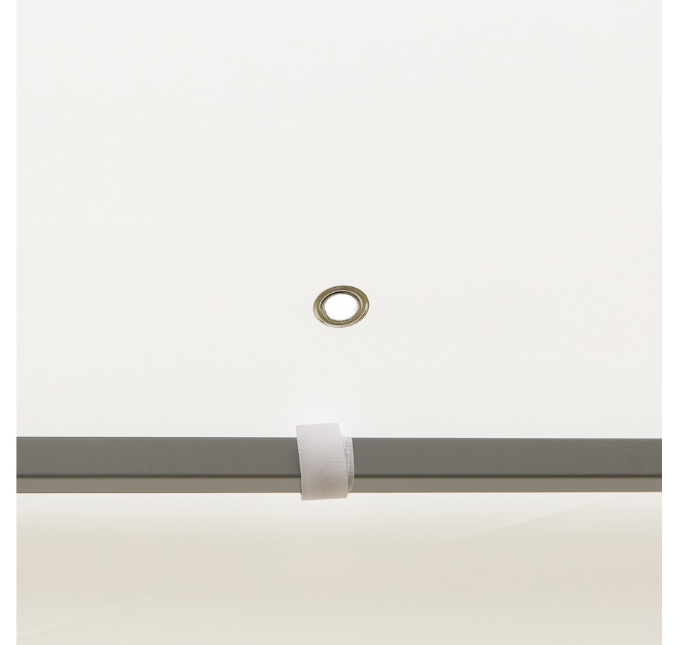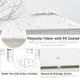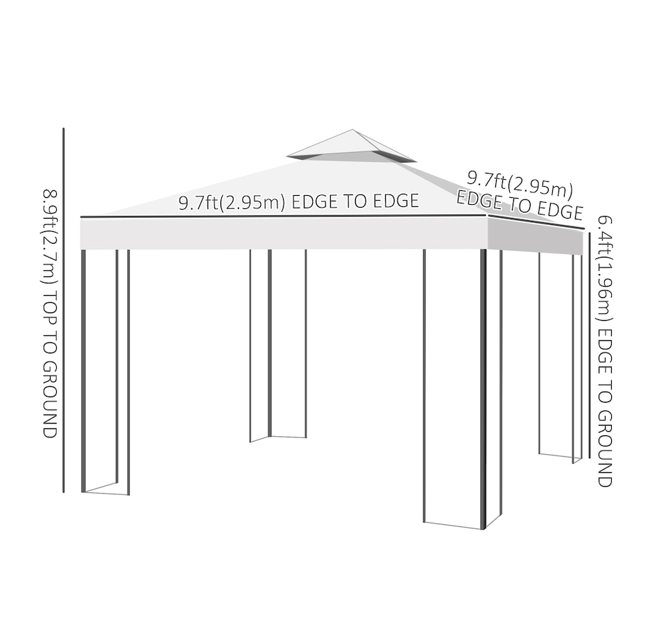 • Colour: Cream White, Black; • Material: Metal, Polyester; • Roof Size: 116.25"L x 116.25"W (295L x 295W cm); • Top Height: 102.25"(270 cm); • Eaves Height: 77.25"(196 cm); • Item Label: 84C-147;Package Includes: